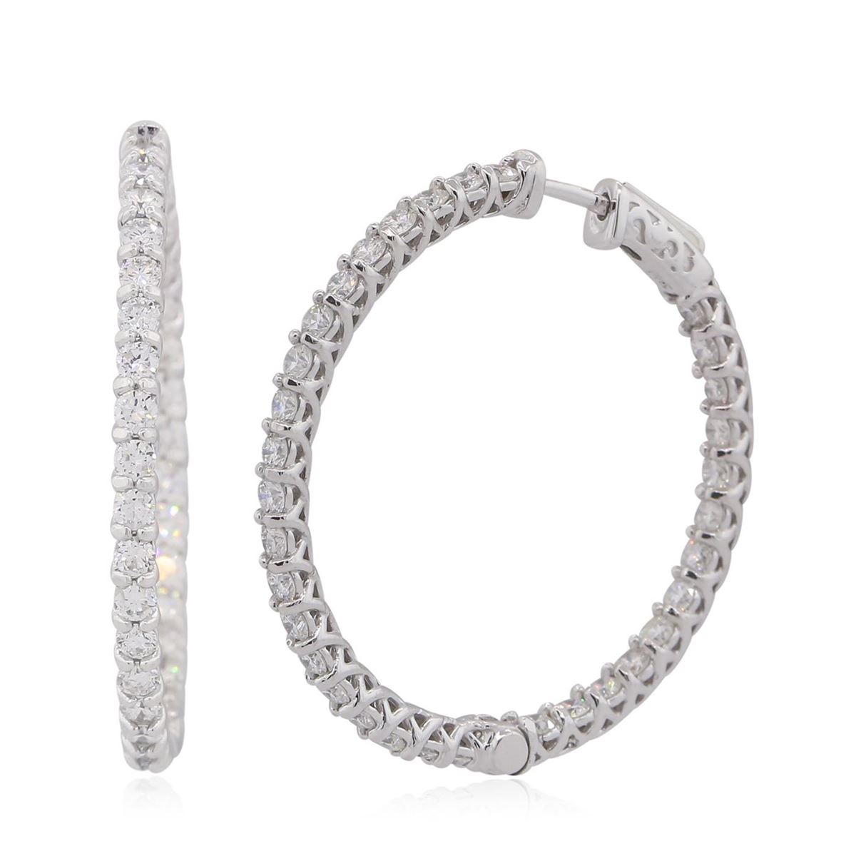 One pair electronically tested 14KT white gold ladies combination cast & assembled hoop earrings with hinged clip backs with a bright polish finish. Identified with markings of "14K". Condition is new. Containing: Sixty-Six prong set round brilliant cut diamonds, measuring 2.00 - 2.00 x 1.20mm (depth est.) approximate total weight of 66 Stones = 1.93ct. Clarity: SI-1 to SI-2. Color: H - I, Cut is Good. All diamonds are graded in the mounting, unless otherwise stated. Total Weight of Diamonds 1.93ct. Total Weight of Earrings 9.30 grams. GGL Appraised at $7,890.00.
