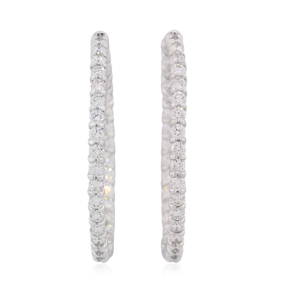One pair electronically tested 14KT white gold ladies combination cast & assembled hoop earrings with hinged clip backs with a bright polish finish. Identified with markings of "14K". Condition is new. Containing: Sixty-Six prong set round brilliant cut diamonds, measuring 2.00 - 2.00 x 1.20mm (depth est.) approximate total weight of 66 Stones = 1.93ct. Clarity: SI-1 to SI-2. Color: H - I, Cut is Good. All diamonds are graded in the mounting, unless otherwise stated. Total Weight of Diamonds 1.93ct. Total Weight of Earrings 9.30 grams. GGL Appraised at $7,890.00.