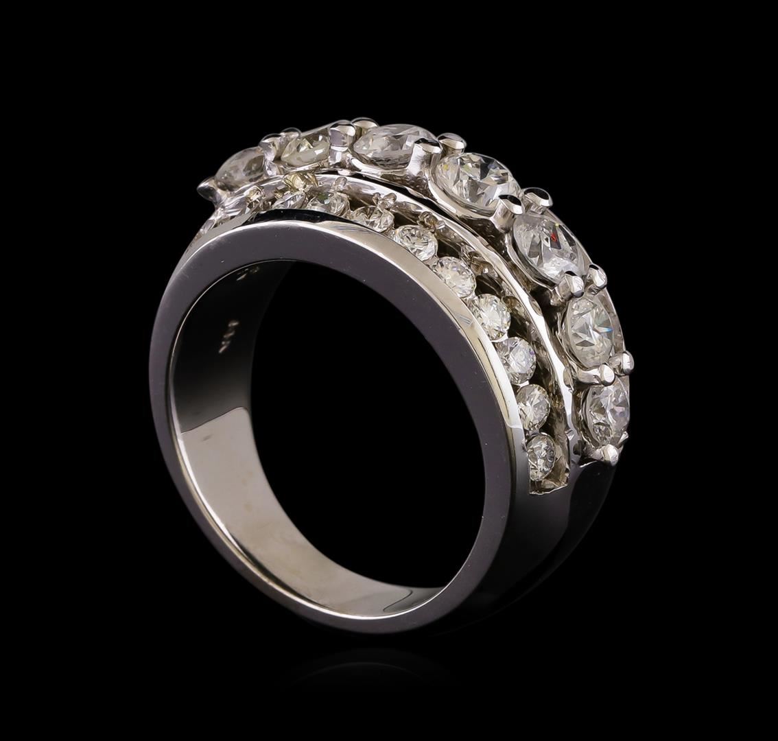 One electronically tested 14KT white gold ladies combination cast & assembled diamond ring with a bright polish finish. Identified with markings of "14K". Condition is new. Containing: Seven prong set round brilliant cut diamonds, measuring 4.00 - 3.50 x 2.25mm (depth est.) approximate total weight of 7 Stones = 1.35ct. Clarity: SI-1 to SI-2. Color: H - J, Cut is Good. Twenty-Two channel set round brilliant cut diamonds, measuring 2.00 - 1.90 x 1.17mm (depth est.) approximate total weight of 22 Stones = 0.60ct. Clarity: SI-2 to I-1. Color: I - J, Cut is Good. All diamonds are graded in the mounting, unless otherwise stated. Total Weight of Diamonds 1.95ct. Total Weight of Ring 12.50 grams. GGL Appraised at $8,885.00.