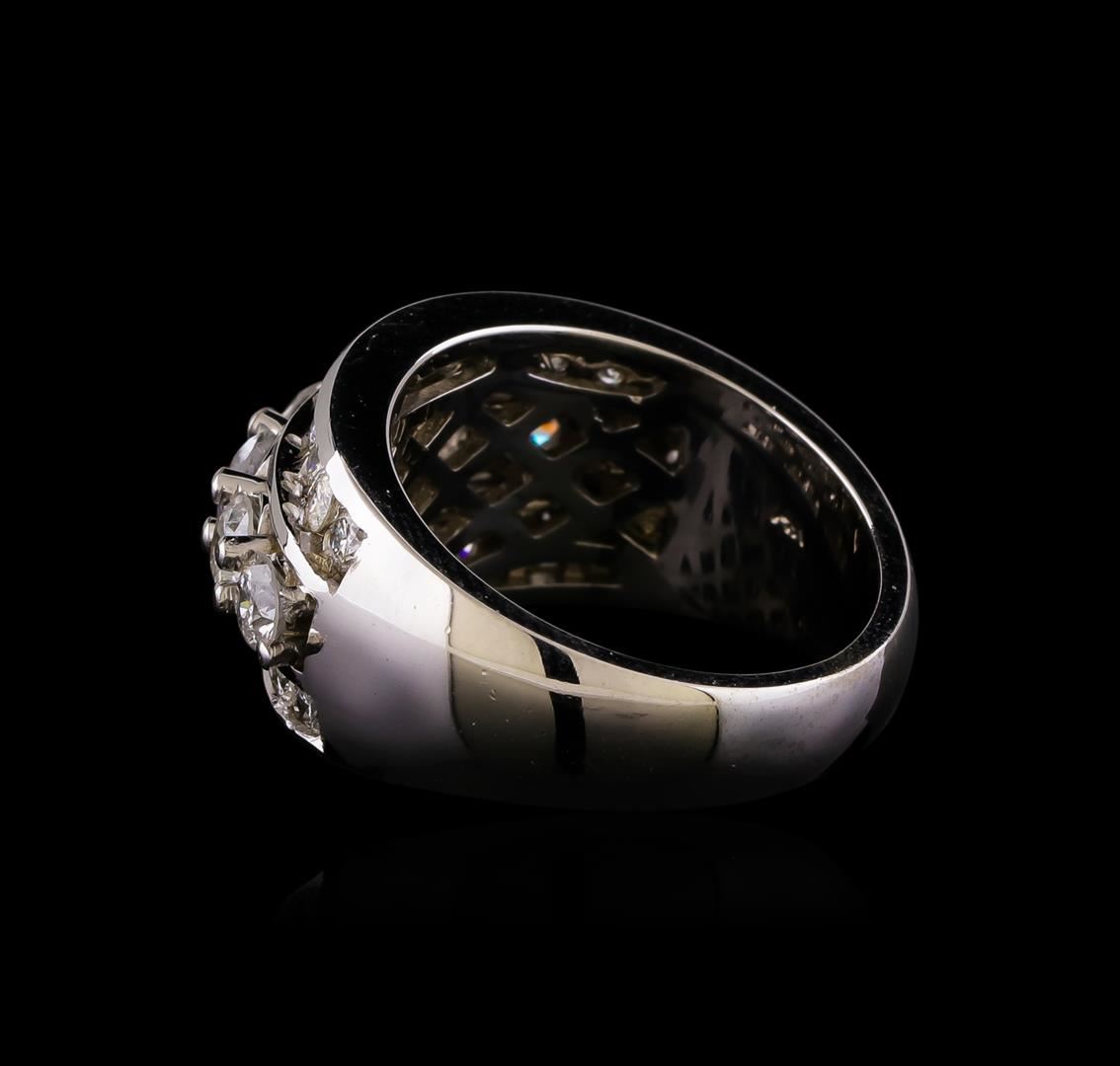 One electronically tested 14KT white gold ladies combination cast & assembled diamond ring with a bright polish finish. Identified with markings of "14K". Condition is new. Containing: Seven prong set round brilliant cut diamonds, measuring 4.00 - 3.50 x 2.25mm (depth est.) approximate total weight of 7 Stones = 1.35ct. Clarity: SI-1 to SI-2. Color: H - J, Cut is Good. Twenty-Two channel set round brilliant cut diamonds, measuring 2.00 - 1.90 x 1.17mm (depth est.) approximate total weight of 22 Stones = 0.60ct. Clarity: SI-2 to I-1. Color: I - J, Cut is Good. All diamonds are graded in the mounting, unless otherwise stated. Total Weight of Diamonds 1.95ct. Total Weight of Ring 12.50 grams. GGL Appraised at $8,885.00.