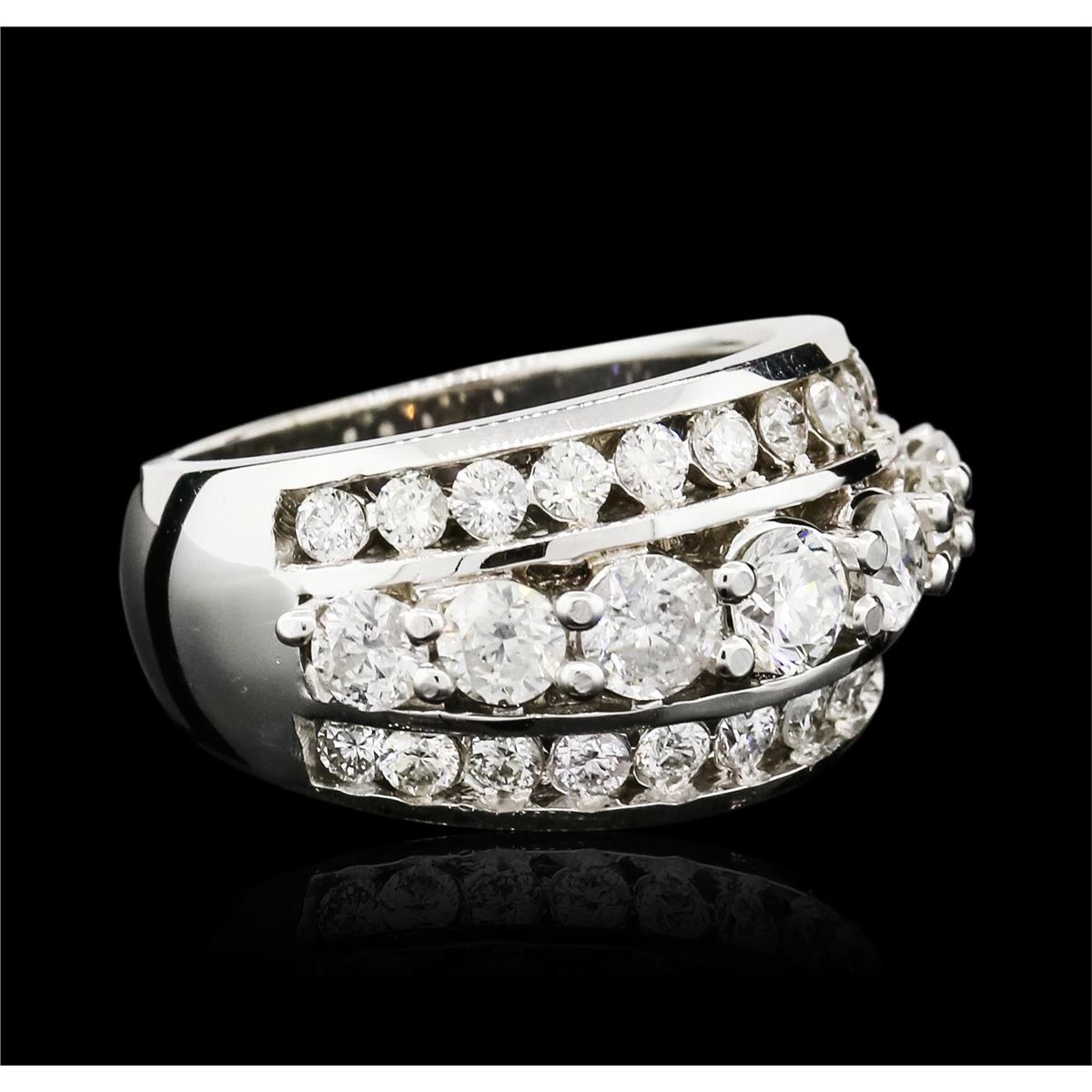 One electronically tested 14KT white gold ladies combination cast & assembled diamond ring with a bright polish finish. Identified with markings of "14K". Condition is new. Containing: Seven prong set round brilliant cut diamonds, measuring 4.00 - 3.50 x 2.25mm (depth est.) approximate total weight of 7 Stones = 1.35ct. Clarity: SI-1 to SI-2. Color: H - J, Cut is Good. Twenty-Two channel set round brilliant cut diamonds, measuring 2.00 - 1.90 x 1.17mm (depth est.) approximate total weight of 22 Stones = 0.60ct. Clarity: SI-2 to I-1. Color: I - J, Cut is Good. All diamonds are graded in the mounting, unless otherwise stated. Total Weight of Diamonds 1.95ct. Total Weight of Ring 12.50 grams. GGL Appraised at $8,885.00.