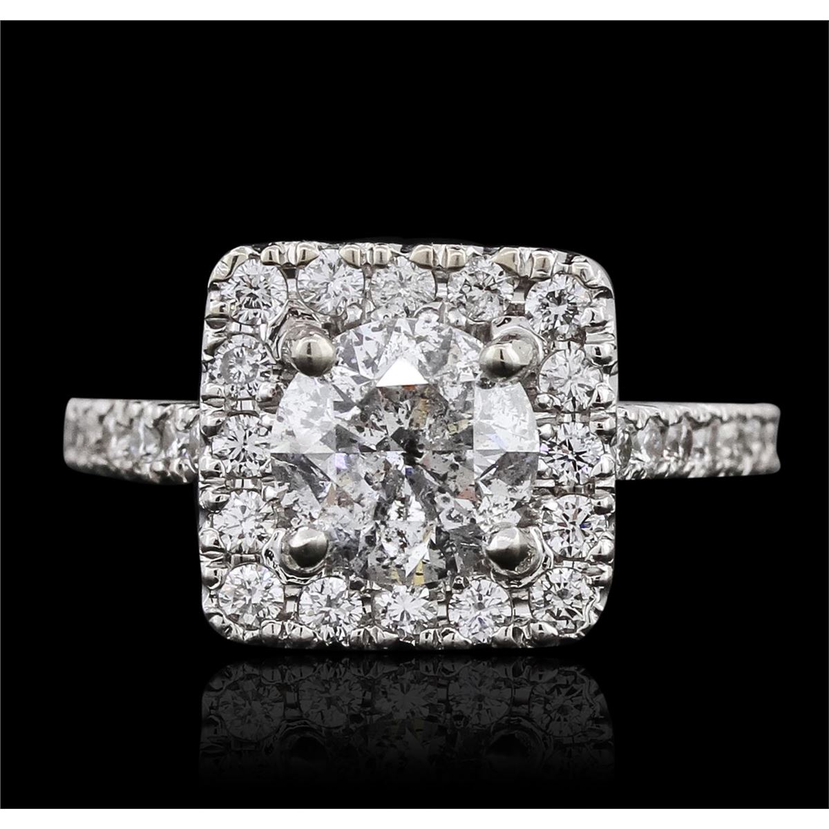 One electronically tested 14KT white gold ladies combination cast & assembled engagement ring with a bright polish finish. Identified with markings of "14K". Condition is new. Containing: One prong set round brilliant cut diamond, measuring 7.15 - 7.10 x 4.28mm (depth est.) approximate weight of 1.33ct. Clarity: I-3. Color: H, Cut is Good. Thirty-Six prong set round brilliant cut diamonds, measuring 1.70 - 1.70 x 1.02mm (depth est.) approximate total weight of 36 Stones = 0.64ct. Clarity: SI-1 to I-1. Color: I - J, Cut is Good. All diamonds are graded in the mounting, unless otherwise stated. Total Weight of Diamonds 1.97ct. Total Weight of Ring 4.70 grams. GGL Appraised at $9,175.00.