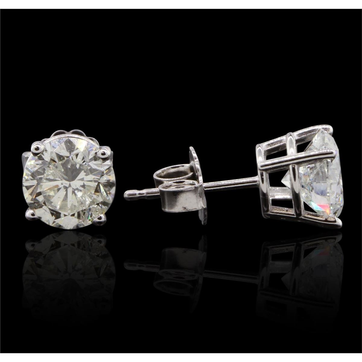 One pair electronically tested 14KT white gold Ladies die struck & assembled stud earrings with friction posts with a bright polish finish. Identified with markings of "14K". Condition is excellent. Containing: One prong set round brilliant cut diamond, measuring 6.30 - 6.30 x 3.90mm (depth est.) approximate weight of 0.99ct. Clarity of I-1, Color of K, Cut is Good. One prong set round brilliant cut diamond, measuring 6.30 - 6.30 x 3.90mm (depth est.) approximate weight of 0.99ct. Clarity of I-1, Color of K, Cut is Good. Comes with platinum posts. Total Weight of Diamonds 1.98ct. Total Weight of Earrings 1.30gm. GGL Appraised at $17,915.00.