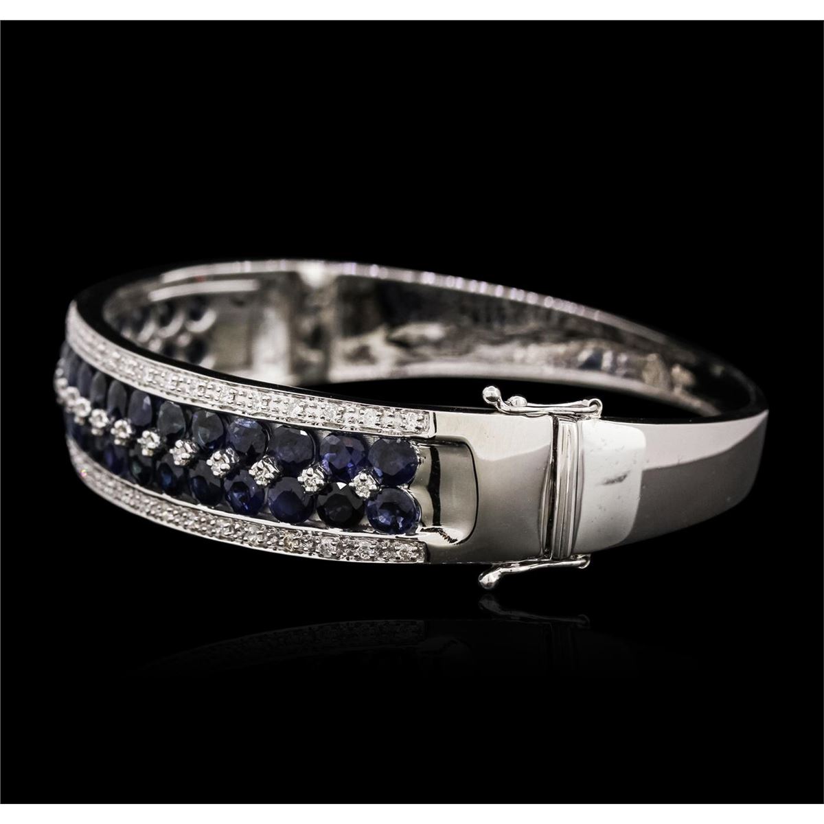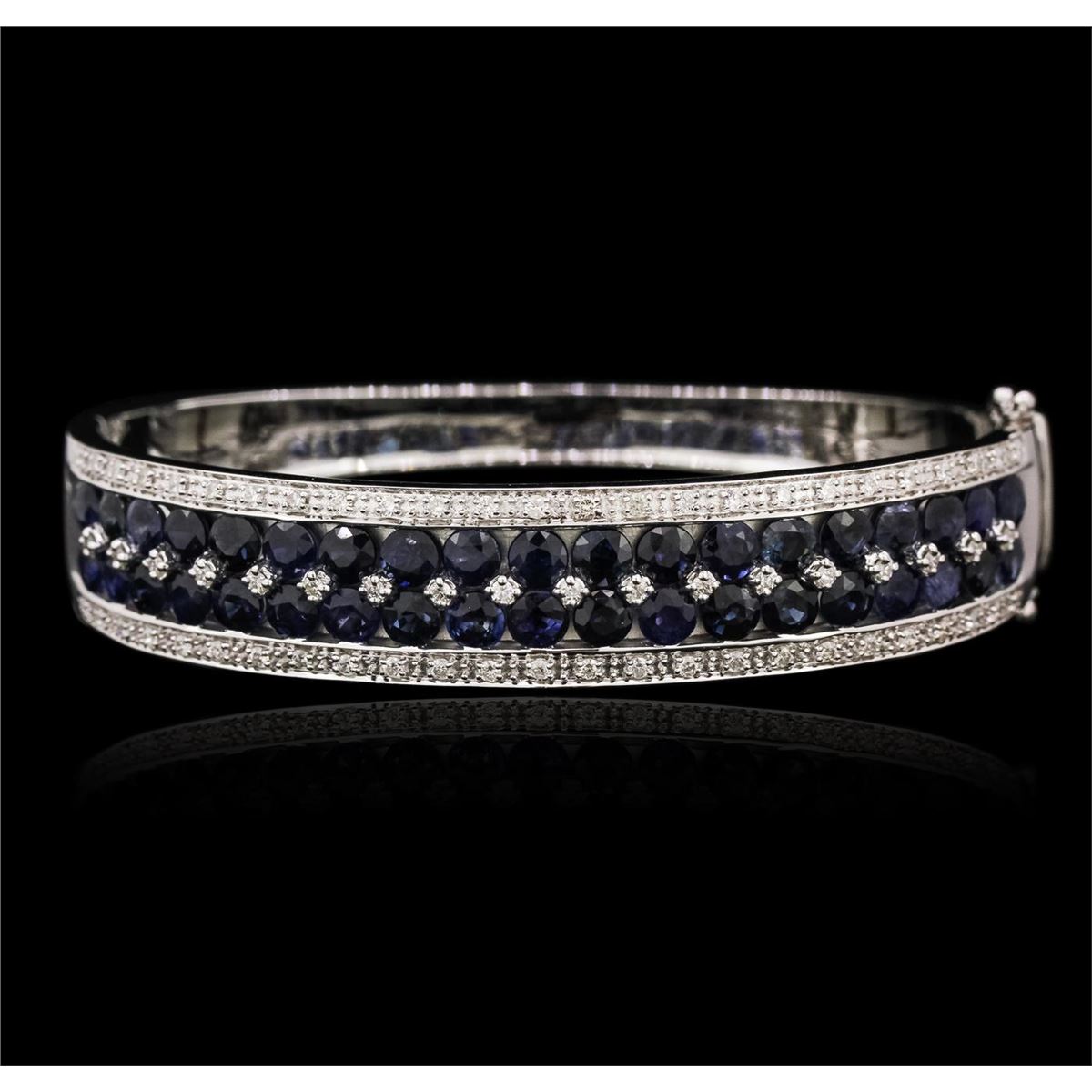 One bangle bracelet featuring: 14KT white gold weighing 22.70 grams containing 46 sapphires with a total weight of 10.41ct and 72 round diamonds with a total weight of 0.85ct.