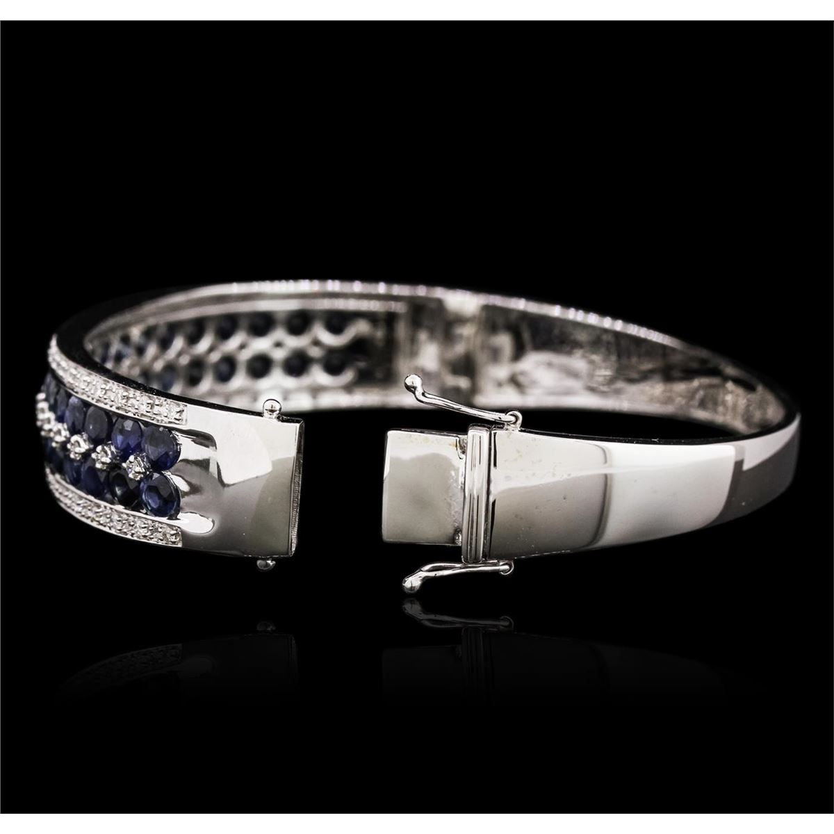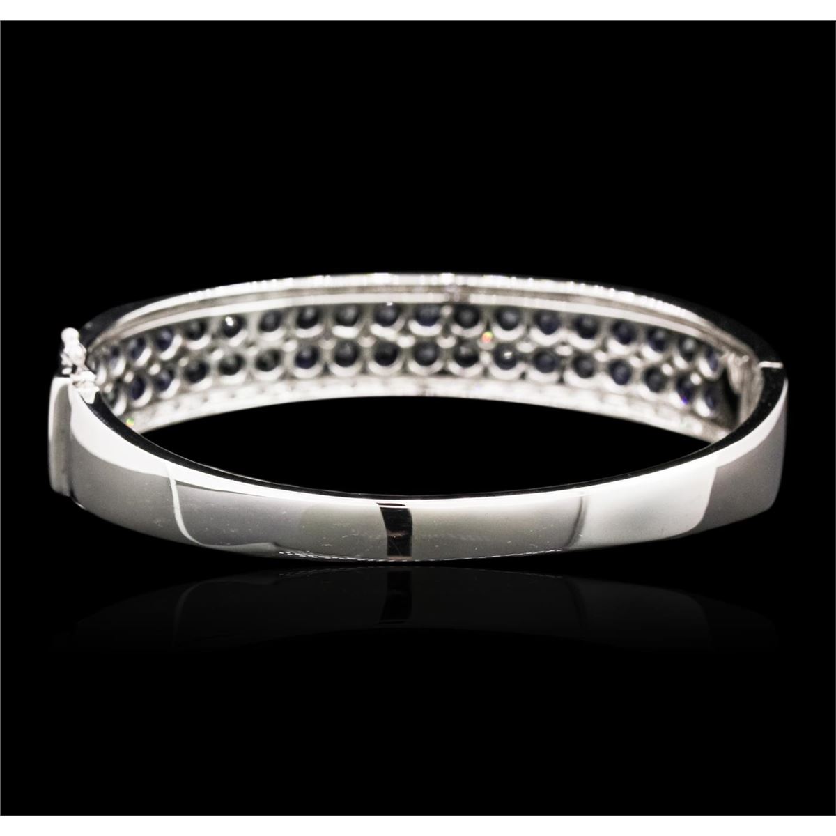 One bangle bracelet featuring: 14KT white gold weighing 22.70 grams containing 46 sapphires with a total weight of 10.41ct and 72 round diamonds with a total weight of 0.85ct.