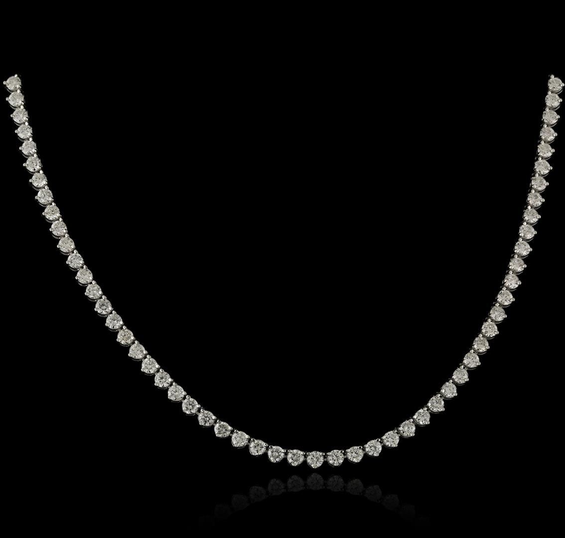 One electronically tested 14KT white gold ladies cast diamond necklace with a hidden box clasp with a bright polish finish. Measurements: 16.50" in length Identified with markings of "14K". Condition is new. Containing: One Hundred Twenty prong set round brilliant cut diamonds, measuring 2.90 - 2.90 x 1.74mm (depth est.) approximate total weight of 120 Stones = 10.62ct. Clarity: SI-2 to I-1. Color: H - I, Cut is Good. All diamonds are graded in the mounting, unless otherwise stated. Total Weight of Diamonds 10.62ct. Total Weight of Necklace 17.20 grams. GGL Appraised at $22,940.00.