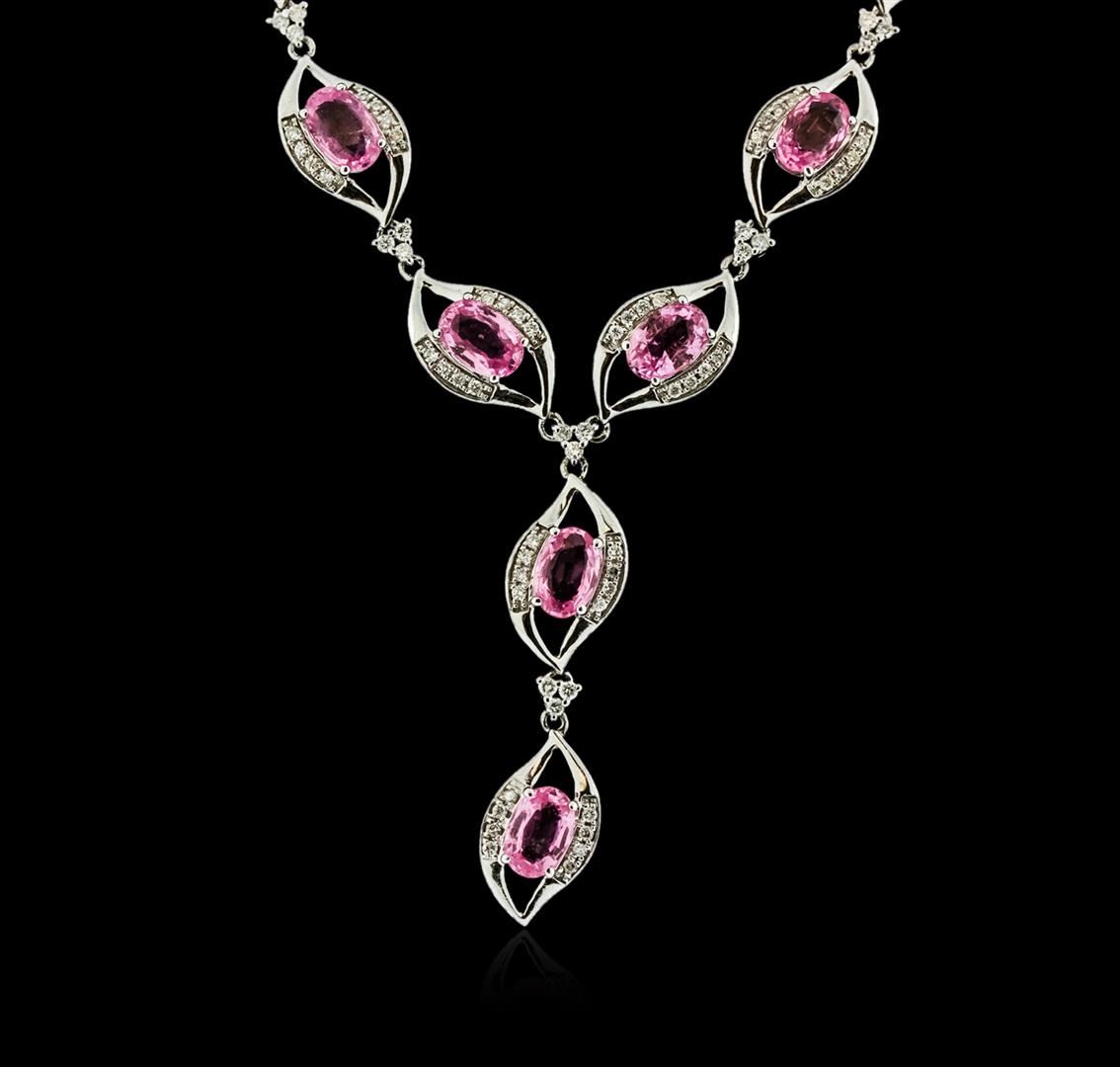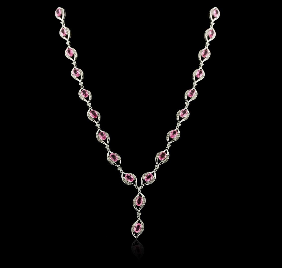 One necklace featuring: 14KT white gold weighing 21.96 grams containing pink sapphires weighing a total of 15.40 carats and diamonds weighing a total of 1.81 carats.