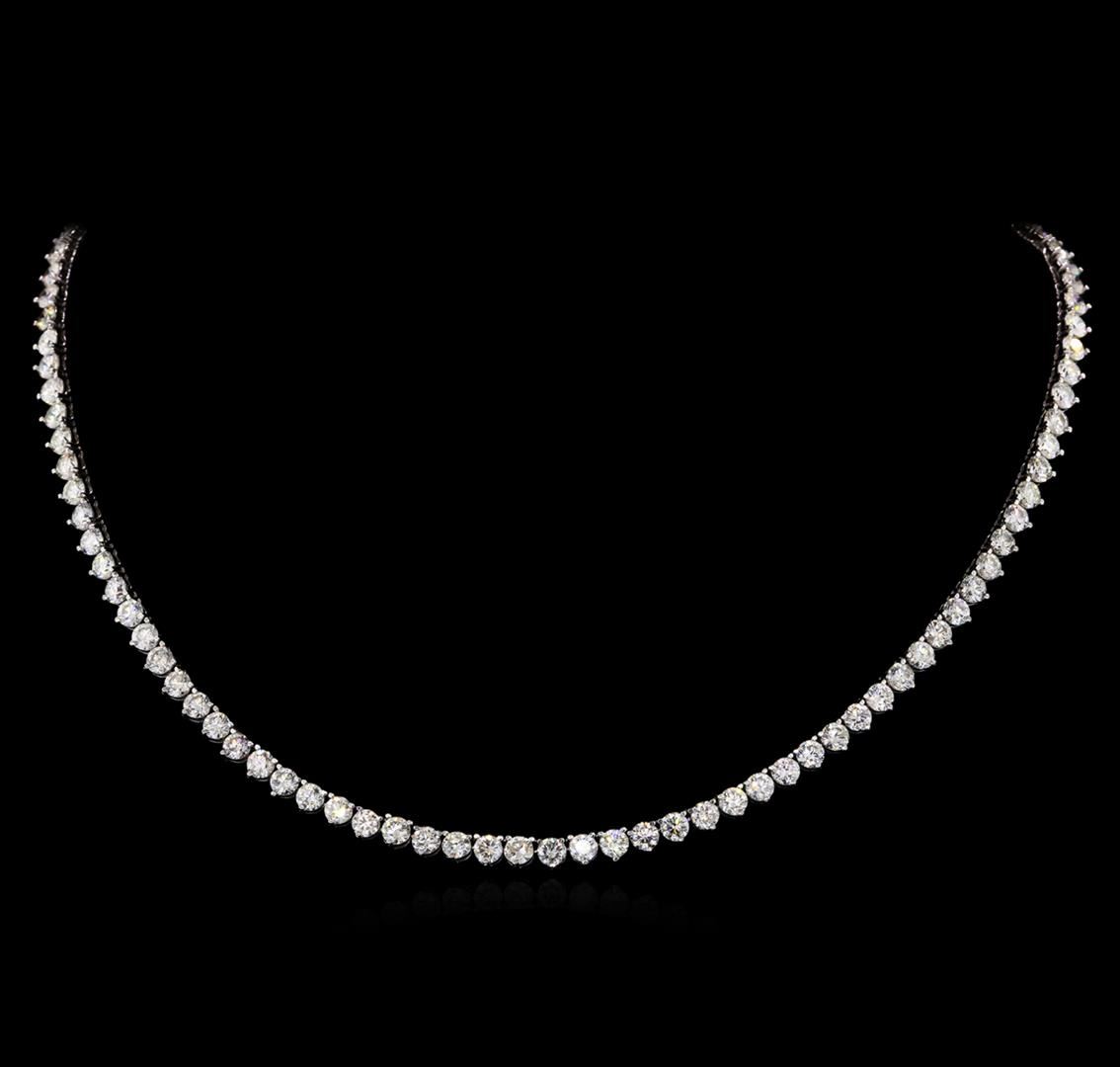 One electronically tested 14KT white gold ladies combination cast & assembled diamond necklace with a hidden box clasp with safety closer with a bright polish finish. Identified with markings of "14K". Condition is new. Containing: One Hundred Nine prong set round brilliant cut diamonds, measuring 3.70 - 3.50 x 2.16mm (depth est.) exact total weight 109 Stones = 19.68ct. Clarity: SI-2 to I-1. Color: H - J, Cut is Good. All diamonds are graded in the mounting, unless otherwise stated. Total Weight of Diamonds 19.68ct. Total Weight of Necklace 20.10 grams. GGL Appraised at $42,060.00.