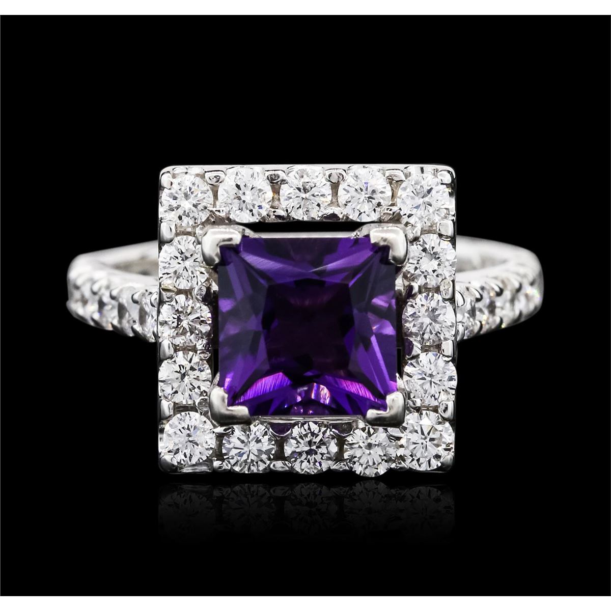 One ring featuring: 14KT white gold weighing 4.90 grams containing one amethyst center stone with a total weight of 2.00ct and round cut diamonds with a total weight of 1.00cts.