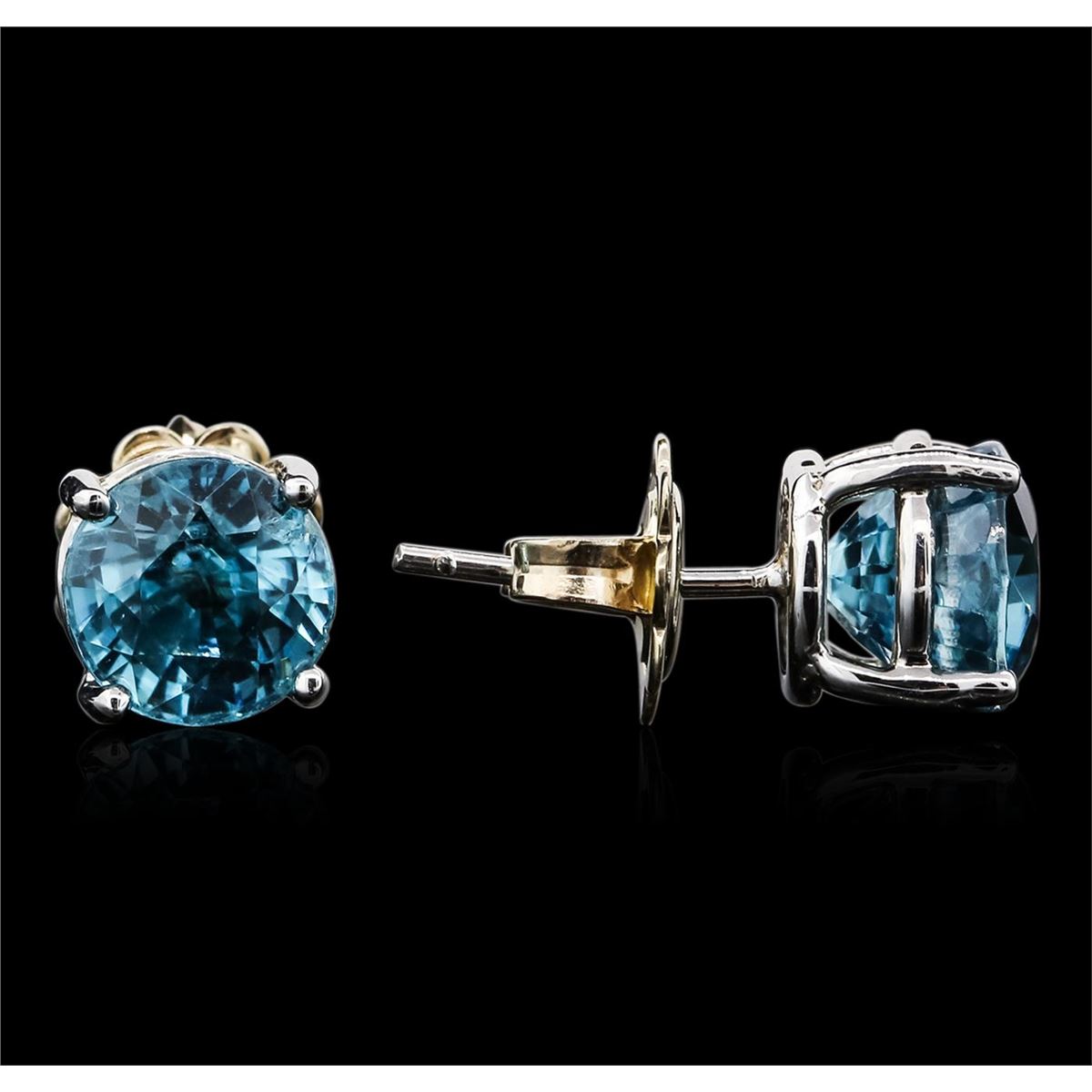 One pair of earrings featuring: 14KT white gold weighing 3.20 grams containing two blue zircons with a total weight of approximately 2.00cts.