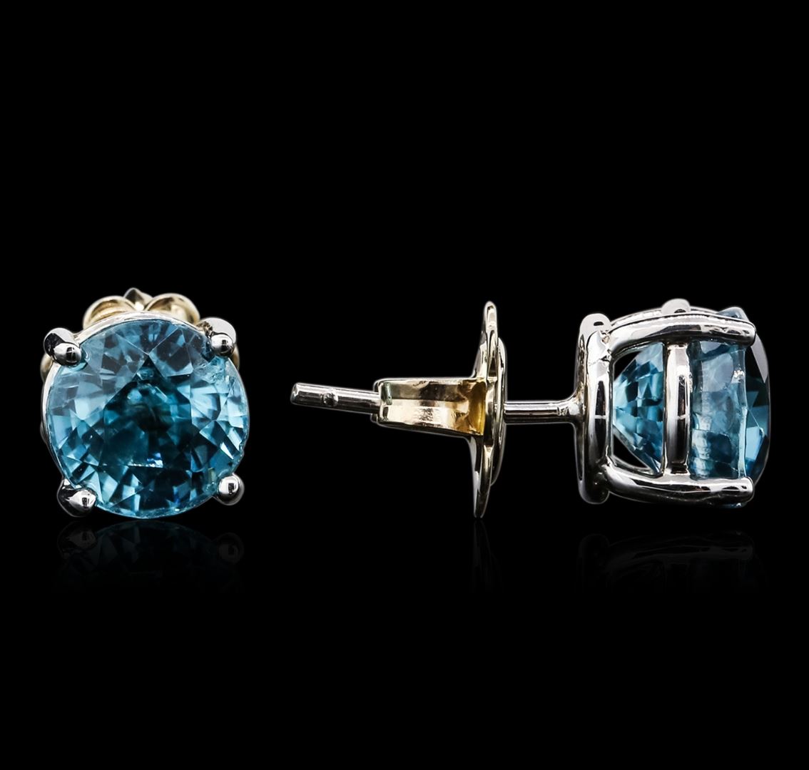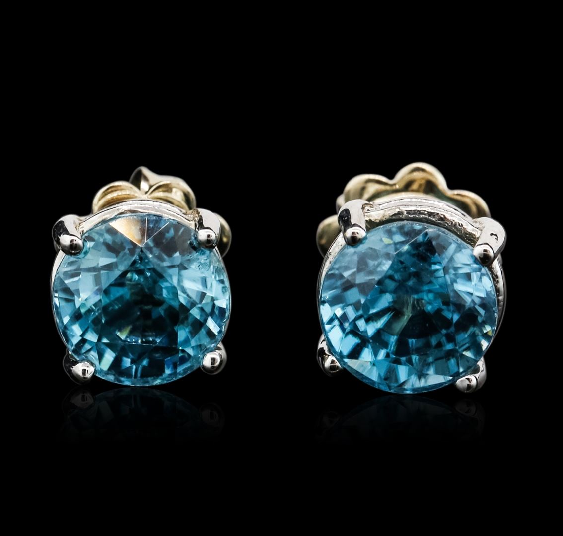 One pair of earrings featuring: 14KT white gold weighing 3.20 grams containing two blue zircons with a total weight of approximately 2.00cts.