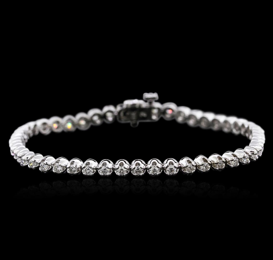 One electronically tested 14KT white gold ladies cast diamond tennis bracelet with a hidden box clasp with safety closer with a bright polish finish. Measurements: 7" in length Identified with markings of "14K". Condition is new. Containing: Fifty-One prong set round brilliant cut diamonds, measuring 2.00 - 2.00 x 1.20mm (depth est.) approximate total weight of 51 Stones = 2.01ct. Clarity: SI-1 to I-1. Color: I - J, Cut is Good. Diamonds are graded in the mounting, unless otherwise stated. Total Weight of Diamonds 2.01ct. Total Weight of Tennis Bracelet 10.50 grams. GGL Appraised at $4,930.00.