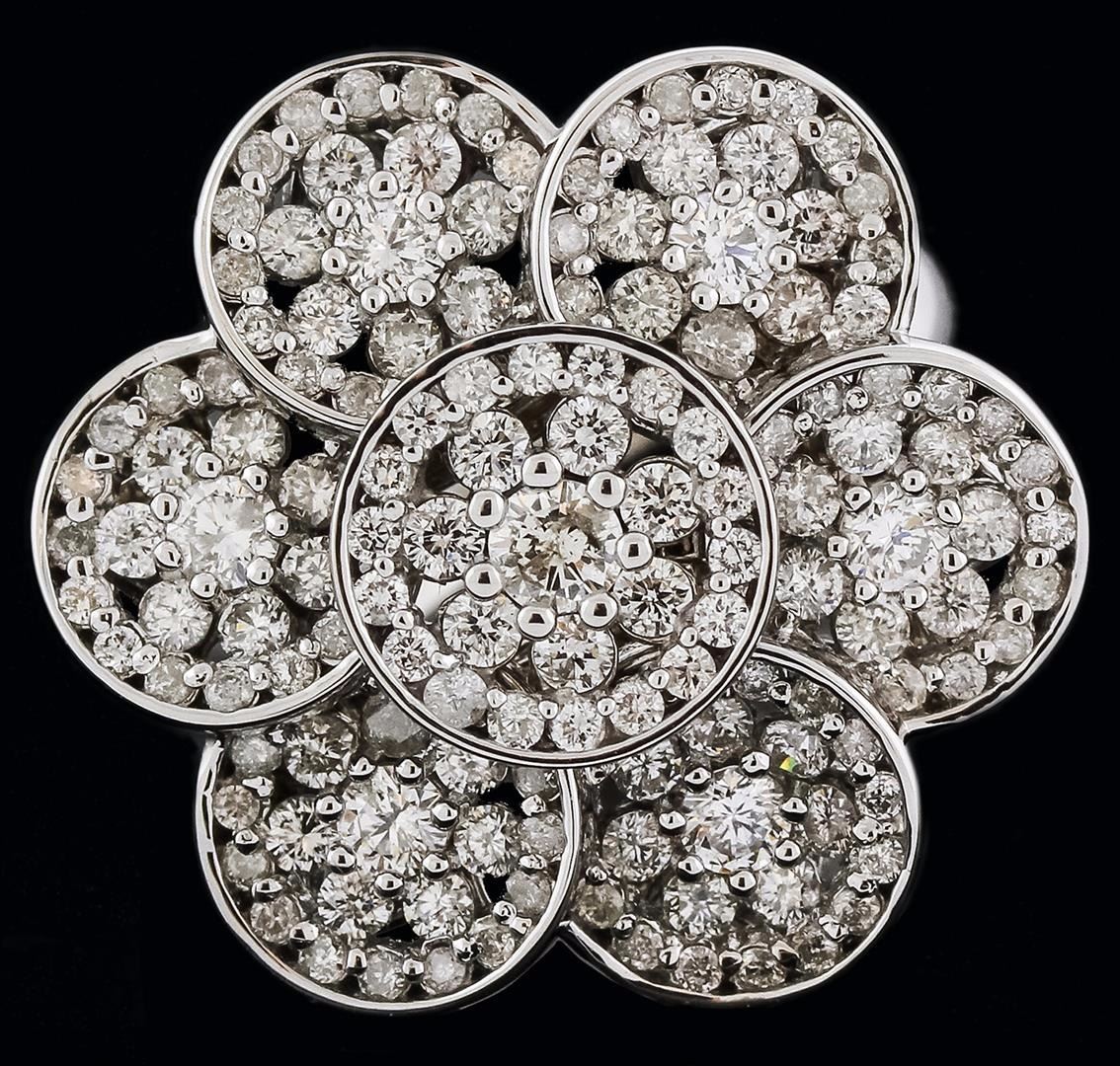 One electronically tested 14KT white gold ladies cast diamond ring with a bright polish finish. Condition is new. Containing: One Hundred Fifty-Four prong set round brilliant cut diamonds, measuring 3.00 - 1.30 x 1.29mm (depth est.) approximate. Total Weight of 154 Stones = 2.02ct. Clarity: SI-1 to SI-2. Color: I - J, Cut is Good. All diamonds are graded in the mounting, unless otherwise stated. Total Weight of Diamonds 2.02ct. Total Weight of Ring 8.90 grams. GGL Appraised at $4,375.00.