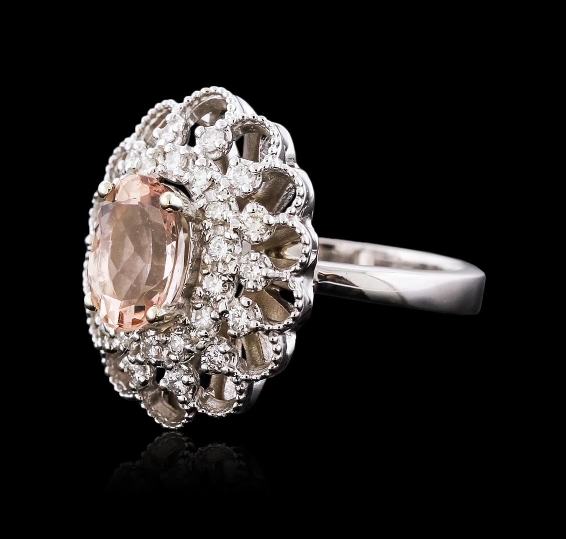 One ring featuring: 14KT white gold weighing a total of 8.25 grams containing one oval cut morganite center weighing 2.05ct and diamonds weighing a total of 0.58ct.