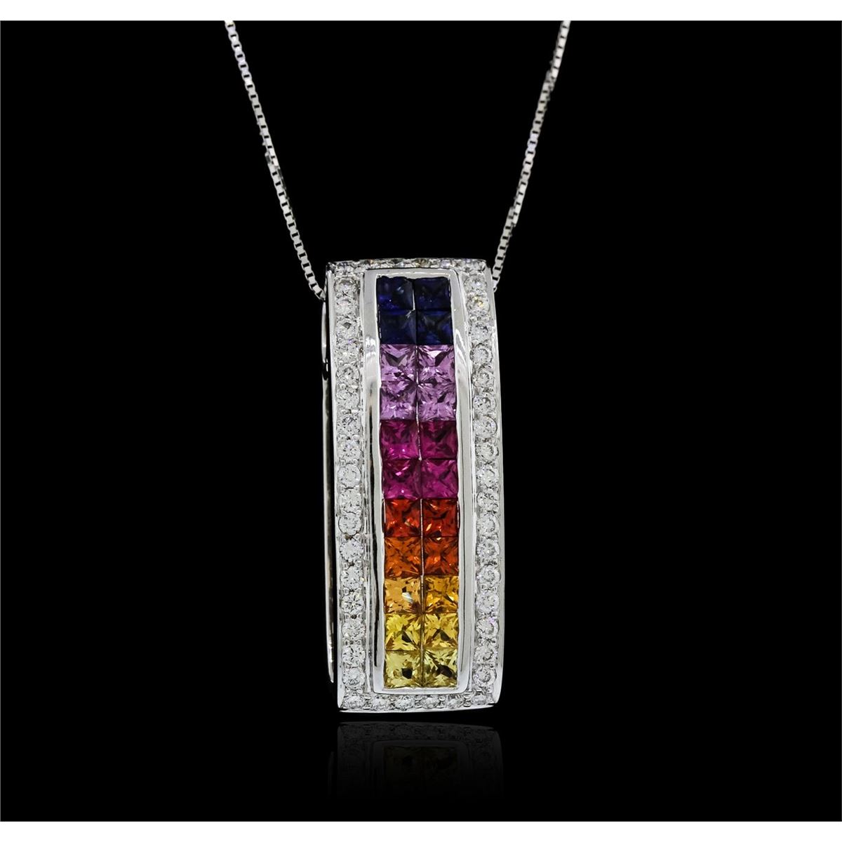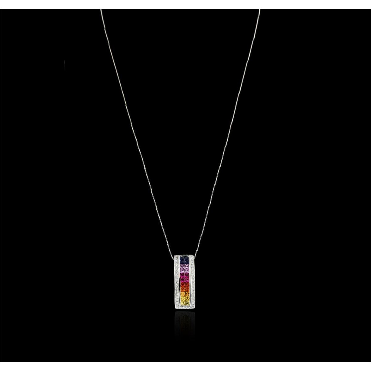 One pendant with chain featuring: 14KT white gold weighing 5.50 grams containing multicolor sapphires with a total weight of 2.06ct and diamonds with a total weight of 0.46ct.