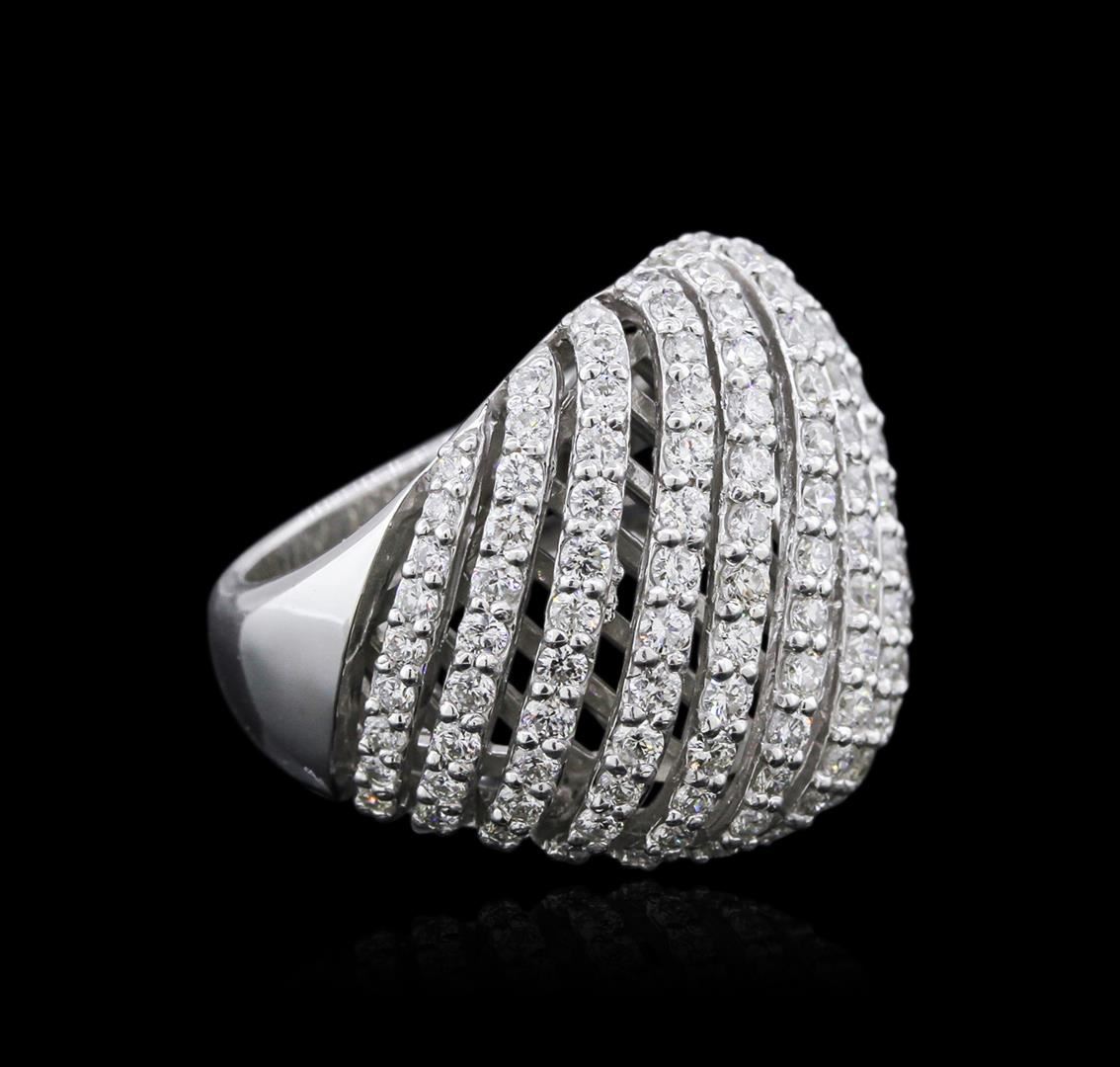 One electronically tested 14KT white gold ladies cast diamond ring with a bright polish finish. Identified with markings of "14K". Condition is new. Containing: One Hundred Thirty-One prong set round brilliant cut diamonds, measuring 1.50 - 1.50 x 0.90mm (depth est.) approximate total weight of 131 Stones = 2.10ct. Clarity: SI-1 to I-1. Color: I - J, Cut is Very Good. All diamonds are graded in the mounting, unless otherwise stated. Total Weight of Diamonds 2.10ct. Total Weight of Ring 12.50 grams. GGL Appraised at $4,970.00.