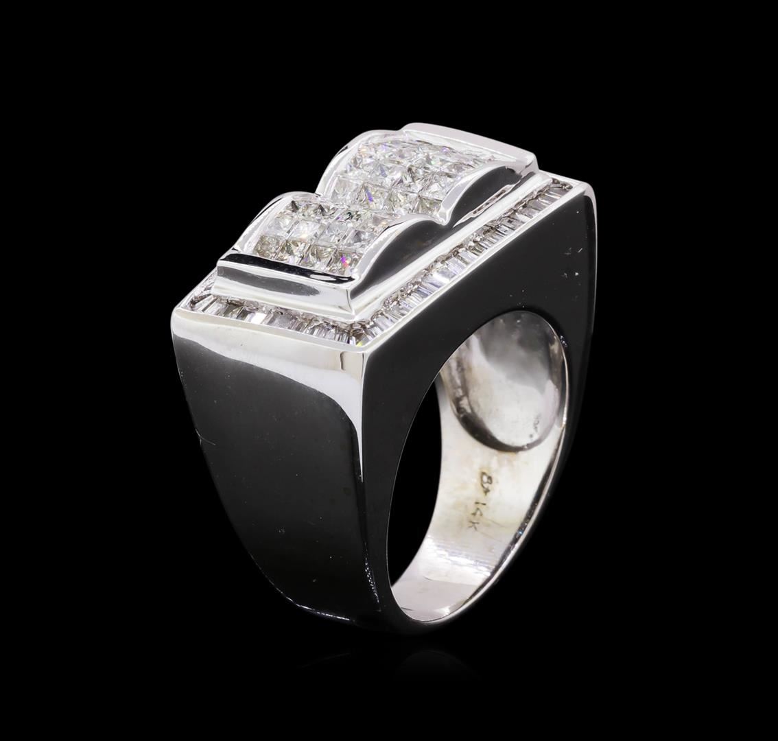 One electronically tested 14KT white gold man's combination cast & assembled ring with a bright polish finish. Condition is new. Identified with markings of "14K". Containing: Forty pave' set princess cut diamonds, measuring 2.00 x 1.70 x 1.28mm (depth est.) approximate. Total Weight of 40 Stones = 1.42ct. Clarity: SI-1 to I-1. Color: H - J, Cut is Good. Sixty-Four channel set baguette cut diamonds, measuring 1.50 x 1.00 x 0.85mm (depth est.) approximate. Total Weight of 64 Stones = 0.74ct. Clarity: SI-1 to I-1. Color: H - I, Cut is Good. Total Weight of Diamonds 2.17ct. Total Weight of Ring 21.50gm. GGL Appraised at $12,270.00.