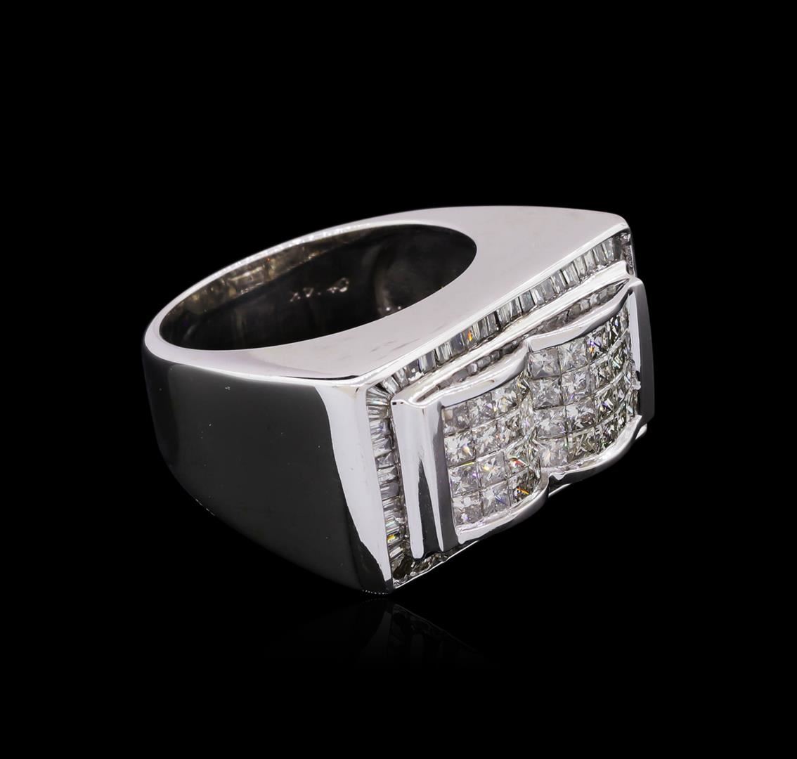 One electronically tested 14KT white gold man's combination cast & assembled ring with a bright polish finish. Condition is new. Identified with markings of "14K". Containing: Forty pave' set princess cut diamonds, measuring 2.00 x 1.70 x 1.28mm (depth est.) approximate. Total Weight of 40 Stones = 1.42ct. Clarity: SI-1 to I-1. Color: H - J, Cut is Good. Sixty-Four channel set baguette cut diamonds, measuring 1.50 x 1.00 x 0.85mm (depth est.) approximate. Total Weight of 64 Stones = 0.74ct. Clarity: SI-1 to I-1. Color: H - I, Cut is Good. Total Weight of Diamonds 2.17ct. Total Weight of Ring 21.50gm. GGL Appraised at $12,270.00.