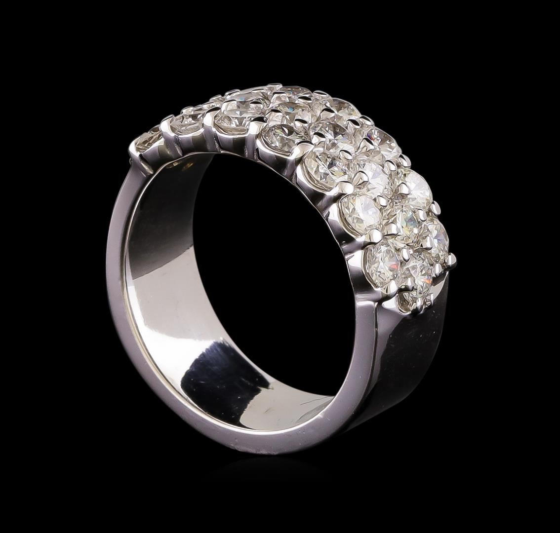 One electronically tested 14KT white gold ladies cast diamond ring with a flat shank with a bright polish finish. Identified with markings of "14K". Condition is new. Containing: Twenty-Two prong set round brilliant cut diamonds, measuring 3.00 - 3.00 x 1.80mm (depth est.) approximate total weight of 22 Stones = 2.17ct. Clarity: SI-2 to I-1. Color: I - J, Cut is Good. All diamonds are graded in the mounting, unless otherwise stated. Total Weight of Diamonds 2.17ct. Total Weight of Ring 9.40 grams. GGL Appraised at $6,345.00.