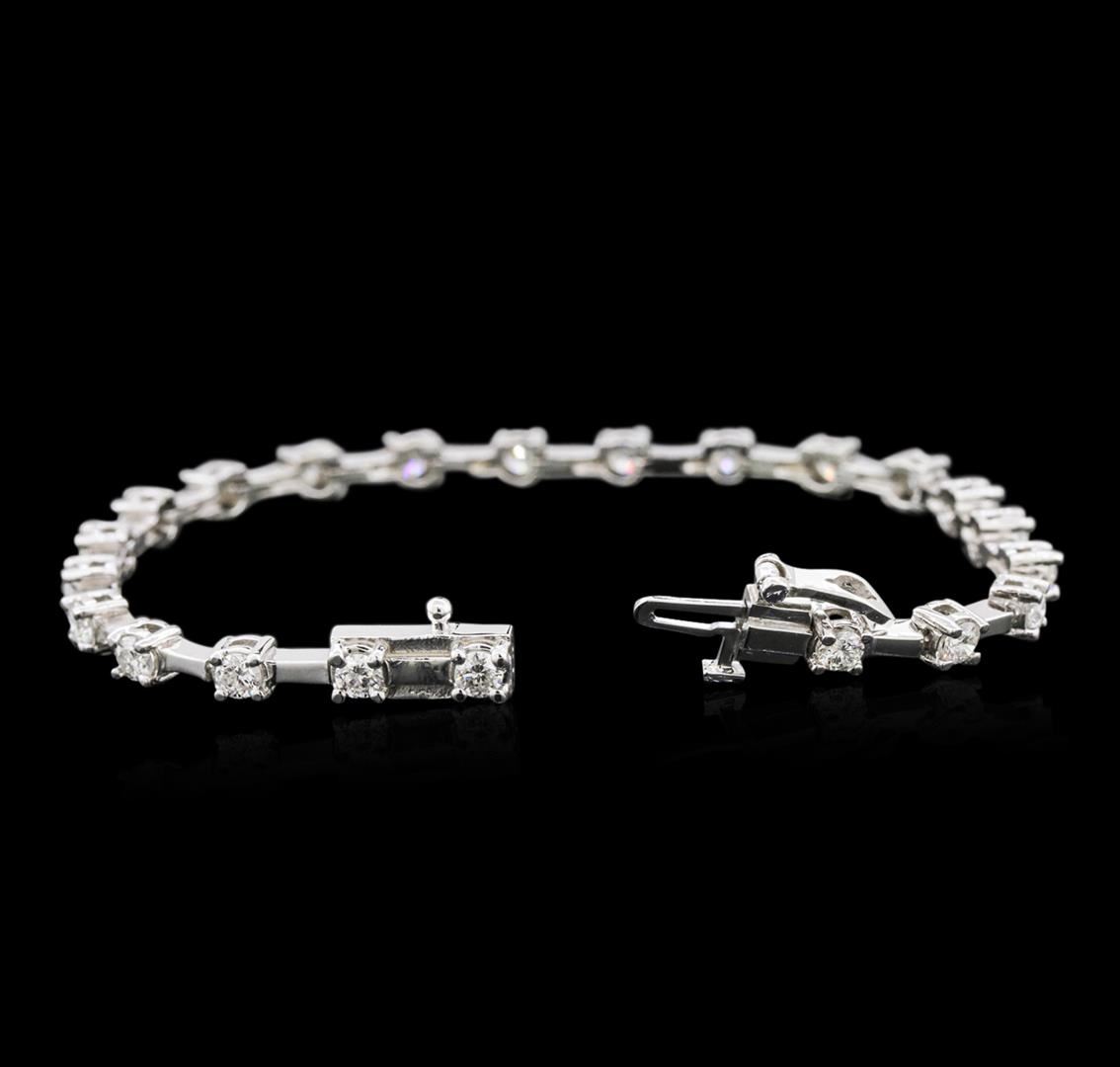 One electronically tested 14KT white gold ladies cast diamond bracelet with a hidden box clasp with safety closer with a bright polish finish. Measurements: 7 " in length Identified with markings of "14K". Condition is new. Containing: Twenty-Two prong set round brilliant cut diamonds, measuring 3.00 - 3.00 x 1.80mm (depth est.) approximate total weight of 22 Stones = 2.17ct. Clarity: SI-2 to I-2. Color: I - J, Cut is Good. All diamonds are graded in the mounting, unless otherwise stated. Total Weight of Diamonds 2.17ct. Total Weight of Bracelet 12.30 grams. GGL Appraised at $5,930.00.