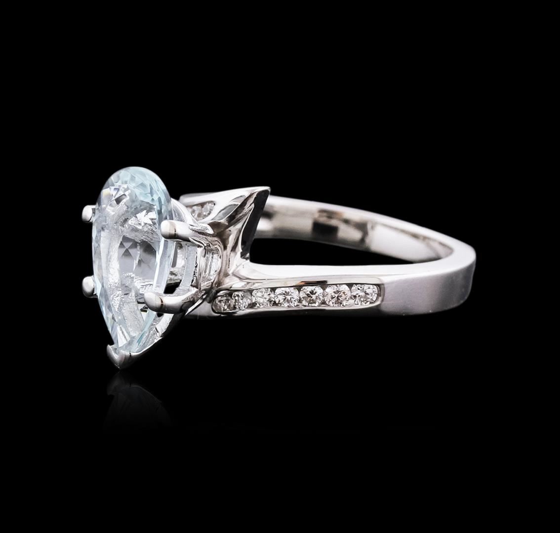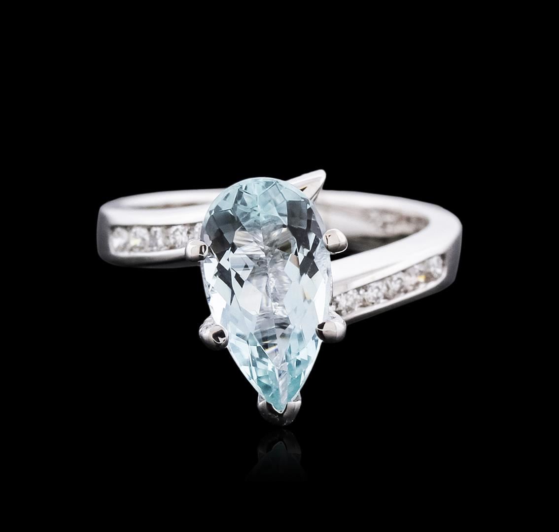 One ring featuring: 14KT white gold weighing 5.59 grams containing one pear cut aquamarine center weighing 2.19ct and round cut diamonds weighing a total of 0.25ct.