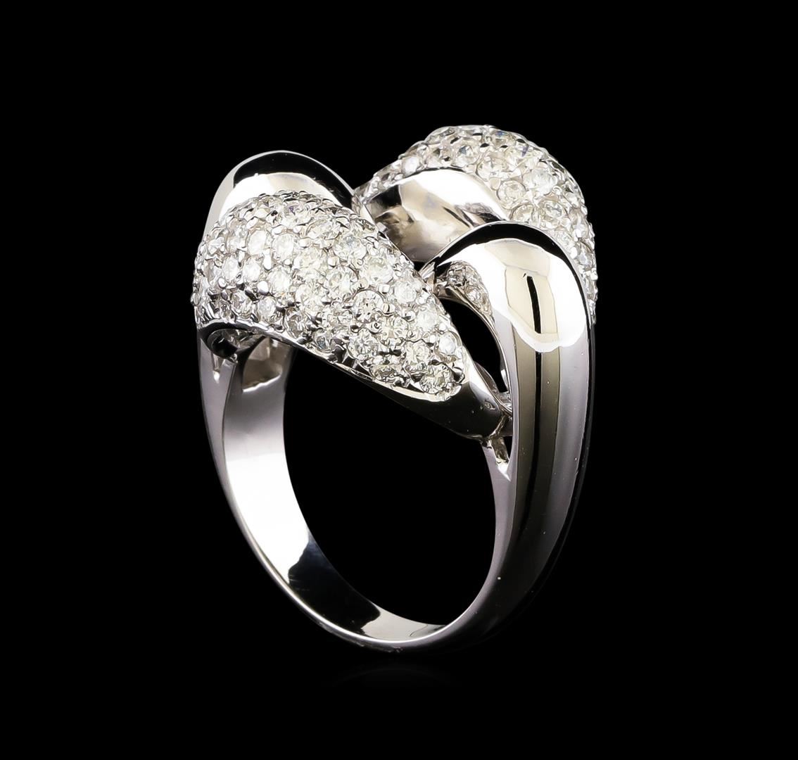 One electronically tested 14KT white gold ladies combination cast & assembled diamond ring with a flat shank with rounded edges with a bright polish finish. Identified with markings of "K14". Condition is new. Containing: One Hundred Twenty-Four prong set round brilliant cut diamonds, measuring 1.70 - 1.70 x 1.02mm (depth est.) approximate total weight of 124 Stones = 2.22ct. Clarity: SI-1 to SI-2. Color: H - J, Cut is Good. All diamonds are graded in the mounting, unless otherwise stated. Total Weight of Diamonds 2.22ct. Total Weight of Ring 11.80 grams. GGL Appraised at $8,260.00.