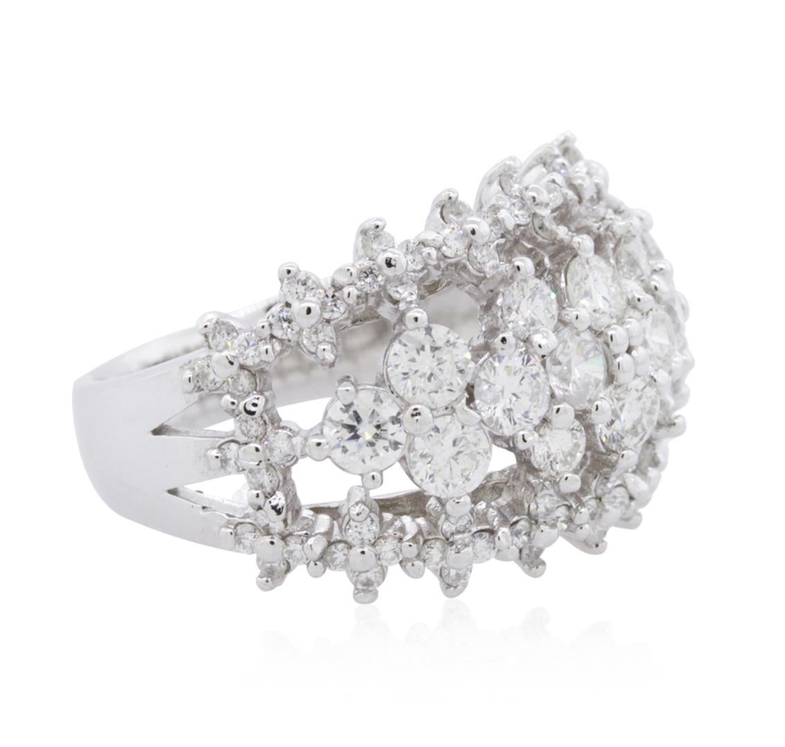 One electronically tested 14KT white gold ladies combination cast & assembled diamond ring with a bright polish finish. Identified with markings of "K14". Condition is new. Containing: Eighty prong set round brilliant cut diamonds, measuring 1.30 - 1.30 x 0.78mm (depth est.) approximate total weight of 80 Stones = 0.64ct. Clarity: I-1. Color: I - J, Cut is Good. Sixteen prong set round brilliant cut diamonds, measuring 3.50 - 2.50 x 1.80mm (depth est.) approximate total weight of 16 Stones = 1.58ct. Clarity: SI-2 to I-1. Color: H - I, Cut is Good. All diamonds are graded in the mounting, unless otherwise stated. Total Weight of Diamonds 2.22ct. Total Weight of Ring 9.50 grams. GGL Appraised at $6,825.00.
