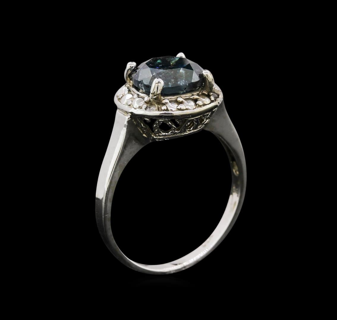 One electronically tested 14KT White Gold 2.23ct Blue Diamond Ring. One polished, stamped, and electronically tested solid 14KT white gold ring featuring: 1 genuine round, brilliant cut diamond center stone with a total weight of 2.23ct, and 4 genuine round full cut diamonds with a total weight of 2.27ctw. This item weighs 3.5 grams, condition is new, very good workmanship. AIG Appraised at $6,450.00.