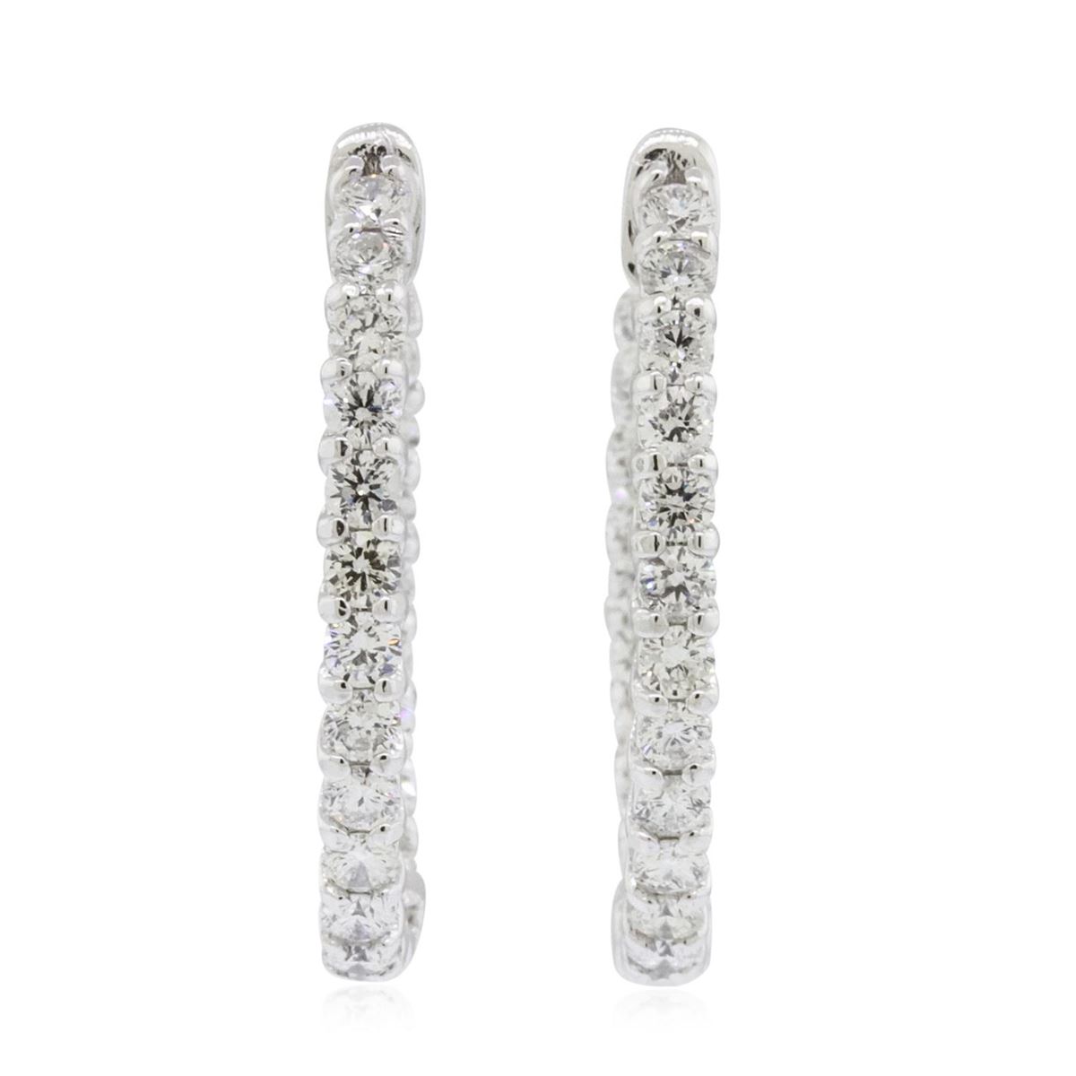 One pair electronically tested 14KT white gold ladies combination cast & assembled diamond hoop earrings with a bright polish finish. Identified with markings of "14K". Condition is new. Containing: Forty-Four prong set round brilliant cut diamonds, measuring 2.40 - 2.40 x 1.44mm (depth est.) approximate total weight of 44 Stones = 2.23ct. Clarity: SI-2 to I-1. Color: I - J, Cut is Good. All diamonds are graded in the mounting, unless otherwise stated. Total Weight of Diamonds 2.23ct. Total Weight of Earrings 7.86 grams. GGL Appraised at $7,445.00.