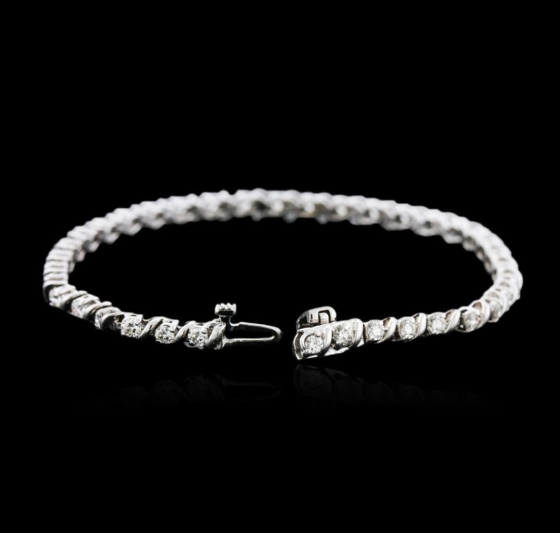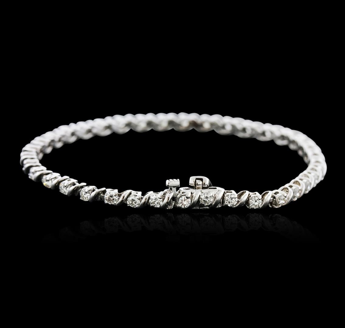 One electronically tested 14KT white gold ladies cast diamond tennis bracelet with a hidden box clasp with safety closer with a bright polish finish. Measurements: 7" in length Identified with markings of "14K". Condition is new. Containing: Thirty-Nine prong set round brilliant cut diamonds, measuring 2.50 - 2.50 x 1.50mm (depth est.) approximate total weight of 39 Stones = 2.23ct. Clarity: SI-1 to SI-2. Color: I - J, Cut is Good. All diamonds are graded in the mounting, unless otherwise stated. Total Weight of Diamonds 2.23ct. Total Weight of Tennis Bracelet 9.20 grams. GGL Appraised at $6,920.00.