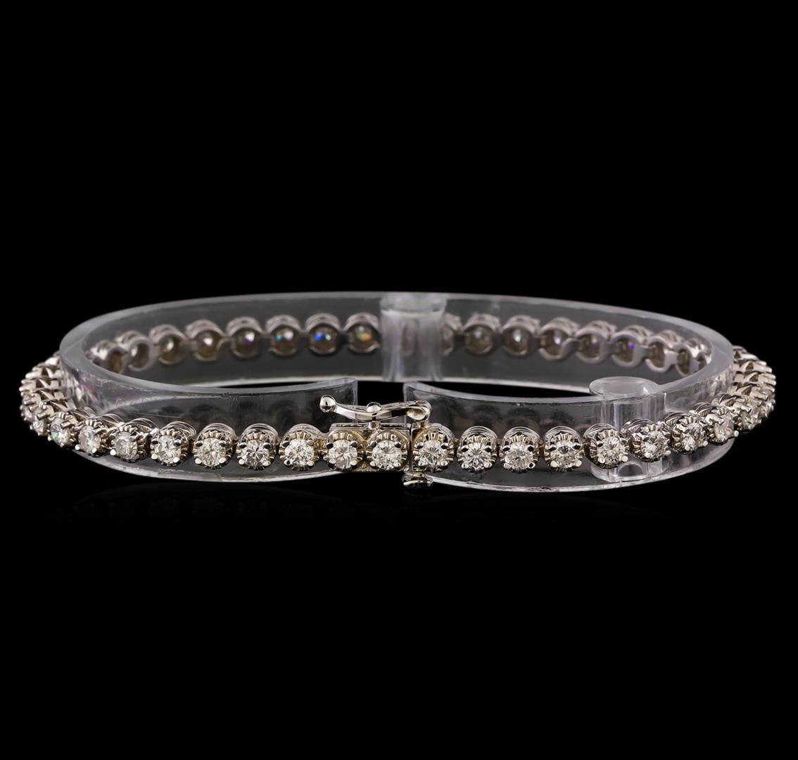 One electronically tested 14KT white gold ladies combination cast & assembled diamond tennis bracelet with a hidden box clasp with safety closer with a bright polish finish. Measurements: 7 in length. Identified with markings of 14K. Condition is new. Containing: Forty-Four prong set round brilliant cut diamonds, measuring 2.40 - 2.40 x 1.44mm (depth est.) approximate total weight of 44 Stones = 2.23ct. Clarity: SI-1 to I-1. Color: H - J, Cut is Good. All diamonds are graded in the mounting, unless otherwise stated. Total Weight of Diamonds 2.23ct. Total Weight of Tennis Bracelet 11.76 grams. GGL Appraised at $7,380.00.
