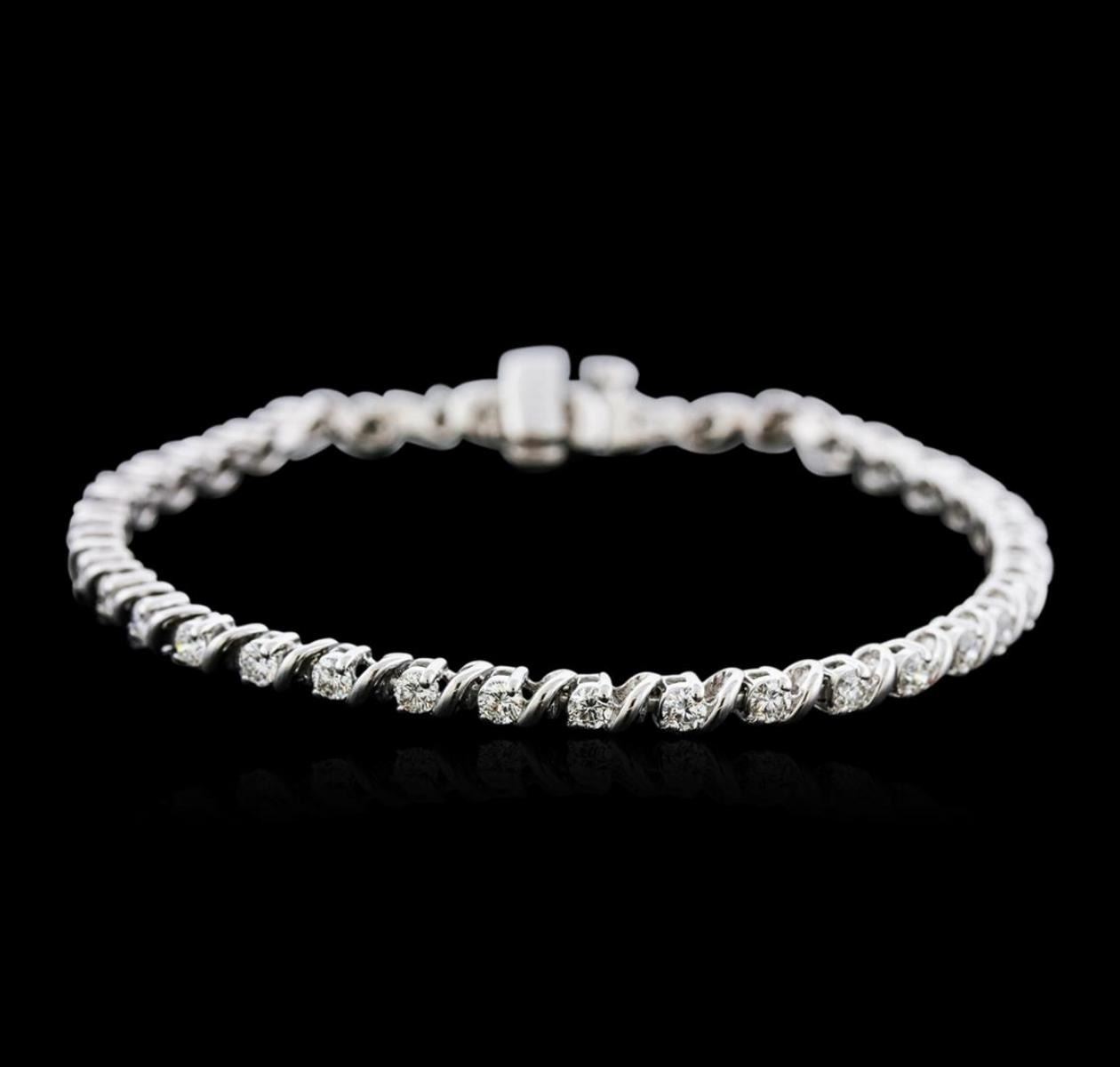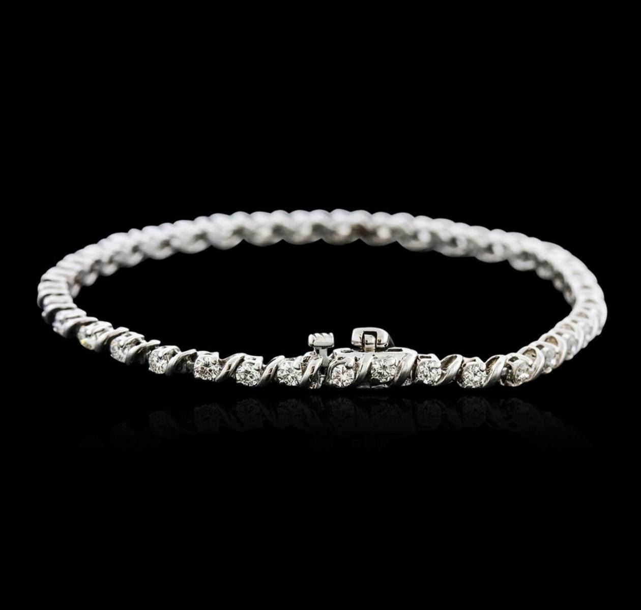 One electronically tested 14KT white gold ladies cast diamond tennis bracelet with a hidden box clasp with safety closer with a bright polish finish. Measurements: 7" in length Identified with markings of "14K". Condition is new. Containing: Thirty-Nine prong set round brilliant cut diamonds, measuring 2.50 - 2.50 x 1.50mm (depth est.) approximate total weight of 39 Stones = 2.23ct. Clarity: SI-1 to SI-2. Color: I - J, Cut is Good. All diamonds are graded in the mounting, unless otherwise stated. Total Weight of Diamonds 2.23ct. Total Weight of Tennis Bracelet 9.20 grams. GGL Appraised.