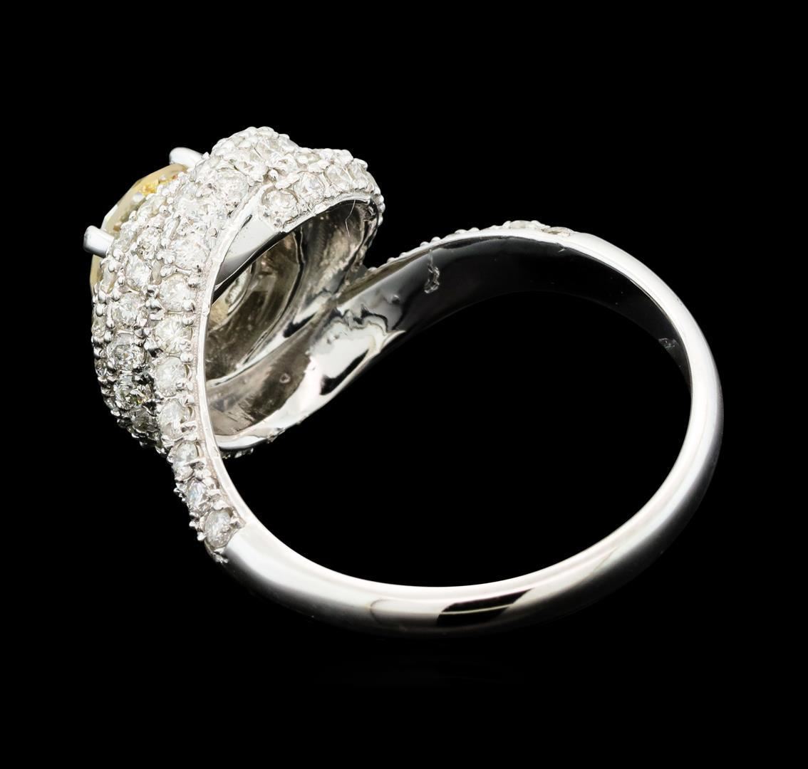 One electronically tested 14KT white gold lady's cast wedding ring with a swirled halo with a bright polish finish. The featured lady's ring has a shank measuring 2.35 millimeters wide. Identified with markings of "K14". Condition is new, good workmanship. Estimated Retail Value: $11740.00 GAS Appraised.