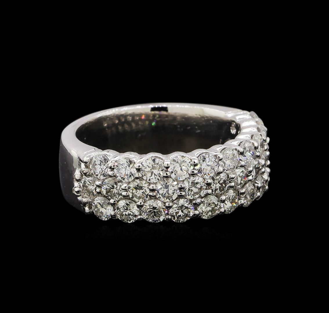 One electronically tested 14KT white gold ladies cast diamond ring with a flat shank with rounded edges with a bright polish finish. Identified with markings of "14K". Condition is new. Containing: Thirty-Four prong set round brilliant cut diamonds, measuring 2.50 - 2.50 x 1.50mm (depth est.) approximate total weight of 34 Stones = 2.31ct. Clarity: SI-1 to I-1. Color: H - J, Cut is Good. Diamonds are graded in the mounting, unless otherwise stated. Total Weight of Diamonds 2.31ct. Total Weight of Ring 9.10 grams. GGL Appraised at $4,430.00.