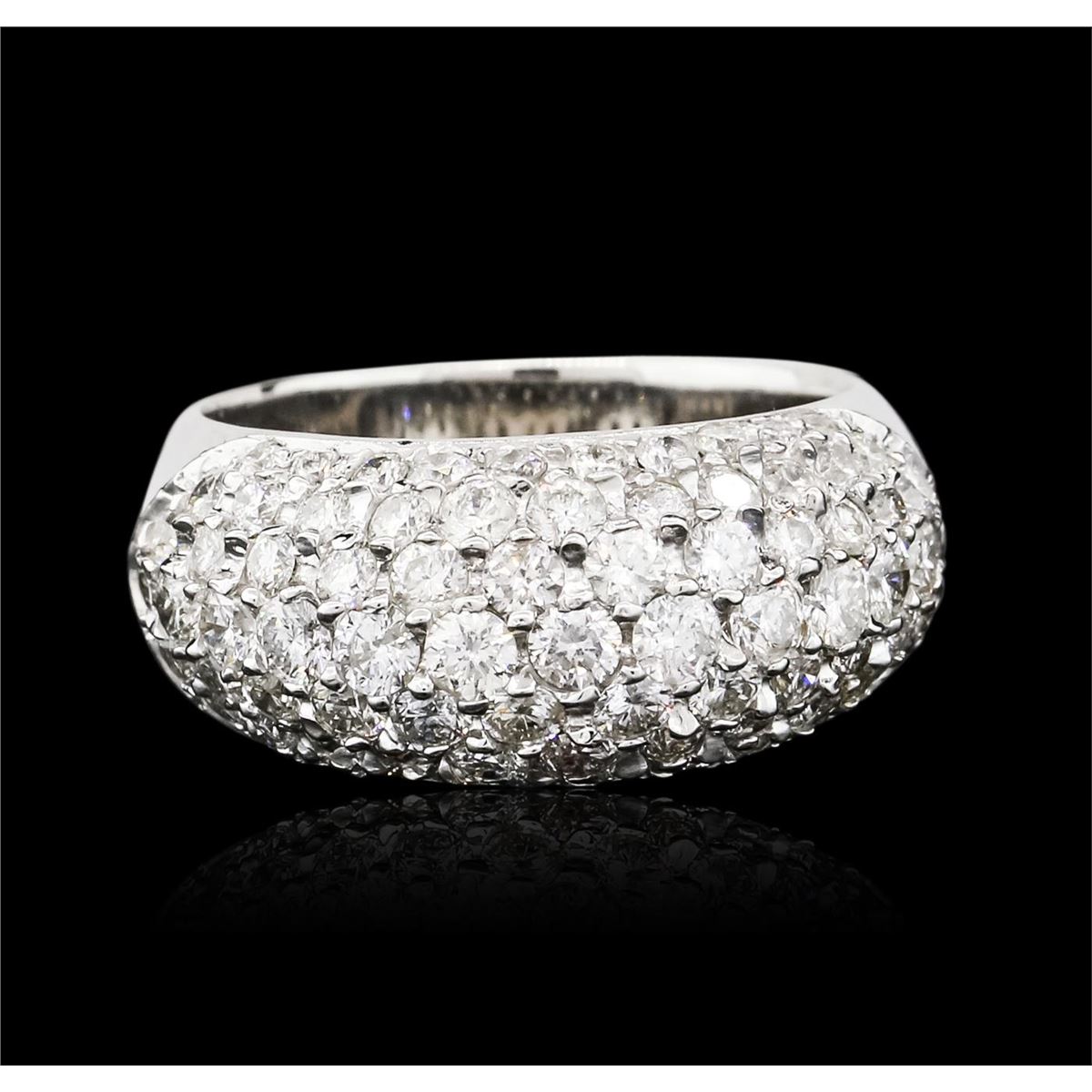 One electronically tested 14KT white gold ladies combination cast & assembled diamond ring with a bright polish finish. Identified with markings of "14K". Condition is new. Containing: Eighty bead set round brilliant cut diamonds, measuring 2.50 - 1.50 x 1.20mm (depth est.) approximate total weight of 80 Stones = 2.34ct. Clarity: SI-2 to I-1. Color: I - J, Cut is Good. All diamonds are graded in the mounting, unless otherwise stated. Total Weight of Diamonds 2.34ct. Total Weight of Ring 7.80 grams. GGL Appraised at $6,365.00.