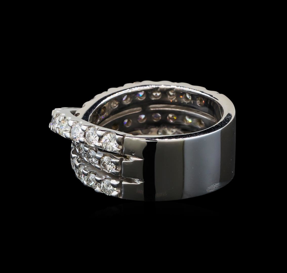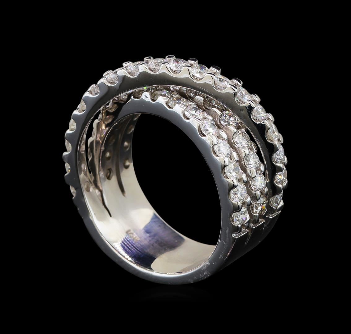 One electronically tested 14KT white gold ladies cast diamond ring with a bright polish finish. Identified with markings of "14K". Condition is new. Containing: Fifty prong set round brilliant cut diamonds, measuring 2.50 - 2.00 x 1.35mm (depth est.) approximate total weight of 50 Stones = 2.40ct. Clarity: SI-1 to I-1. Color: I - J, Cut is Good. All diamonds are graded in the mounting, unless otherwise stated. Total Weight of Diamonds 2.40ct. Total Weight of Ring 10.20 grams. GGL Appraised at $5,300.00.