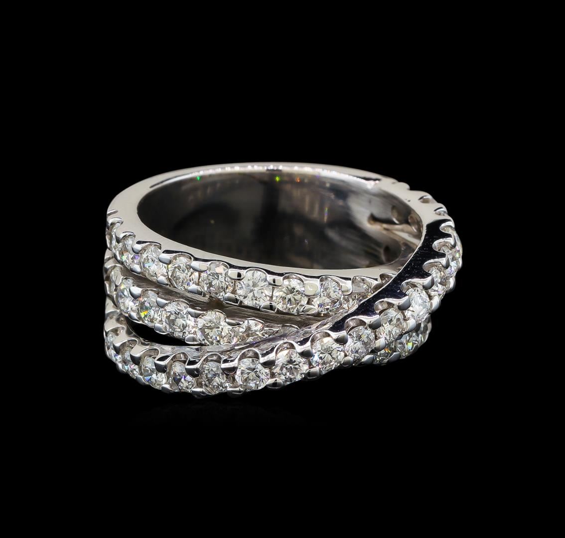 One electronically tested 14KT white gold ladies cast diamond ring with a bright polish finish. Identified with markings of "14K". Condition is new. Containing: Fifty prong set round brilliant cut diamonds, measuring 2.50 - 2.00 x 1.35mm (depth est.) approximate total weight of 50 Stones = 2.40ct. Clarity: SI-1 to I-1. Color: I - J, Cut is Good. All diamonds are graded in the mounting, unless otherwise stated. Total Weight of Diamonds 2.40ct. Total Weight of Ring 10.20 grams. GGL Appraised at $5,300.00.