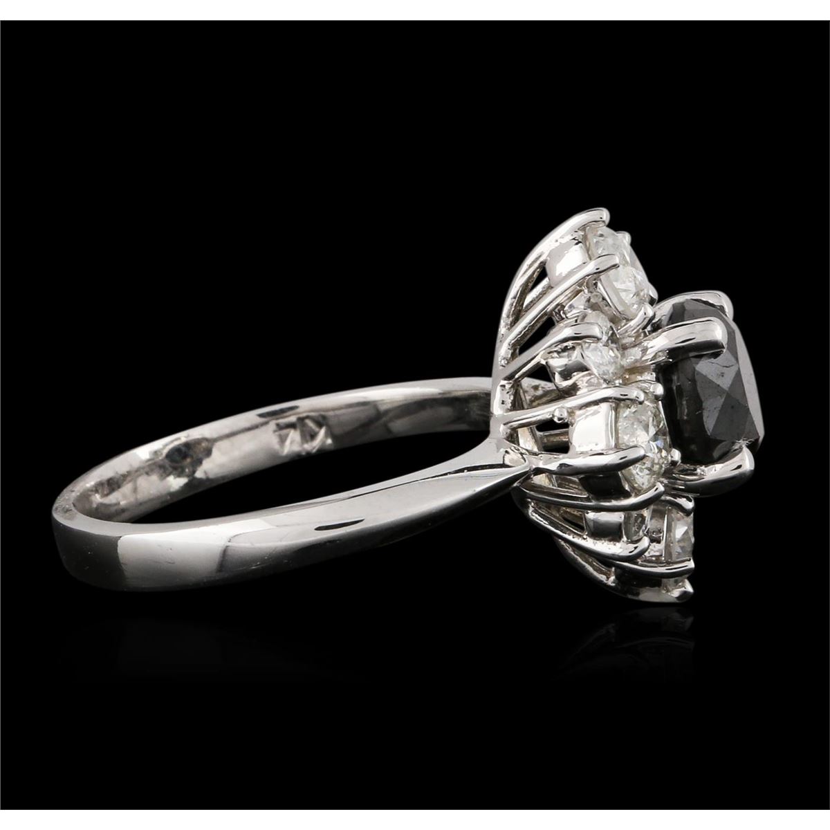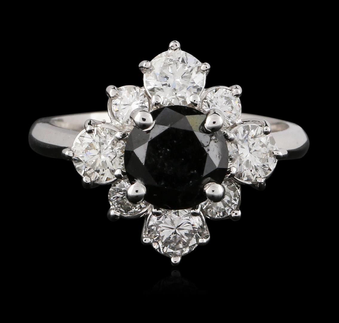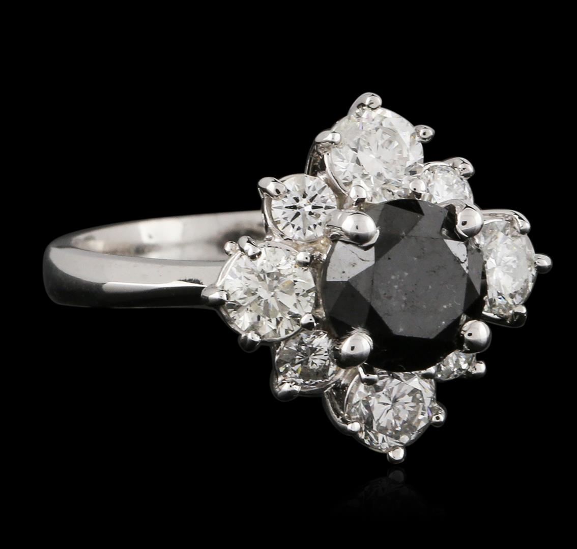 One electronically tested 14KT white gold ladies cast diamond engagement ring with a bright polish finish. Identified with markings of "K14". Condition is new. Containing: One prong set round brilliant cut diamond, measuring 7.20 - 7.20 x 4.32mm (depth est.) approximate weight of 1.37ct. Four prong set round brilliant cut diamonds, measuring 3.80 - 3.80 x 2.28mm (depth est.) approximate total weight of 4 Stones = 0.80ct. Clarity: SI-1 to SI-2. Color: I - J, Cut is Good. Four prong set round brilliant cut diamonds, measuring 3.00. - 3.00. x 1.80mm (depth est.) approximate total weight of 4 Stones = 0.40ct. Clarity: SI-1 to SI-2. Color: I - J, Cut is Good. All diamonds are graded in the mounting, unless otherwise stated. Total Weight of Diamonds 2.56ct. Total Weight of Engagement Ring 4.80 grams. GGL Appraised at $4,815.00.
