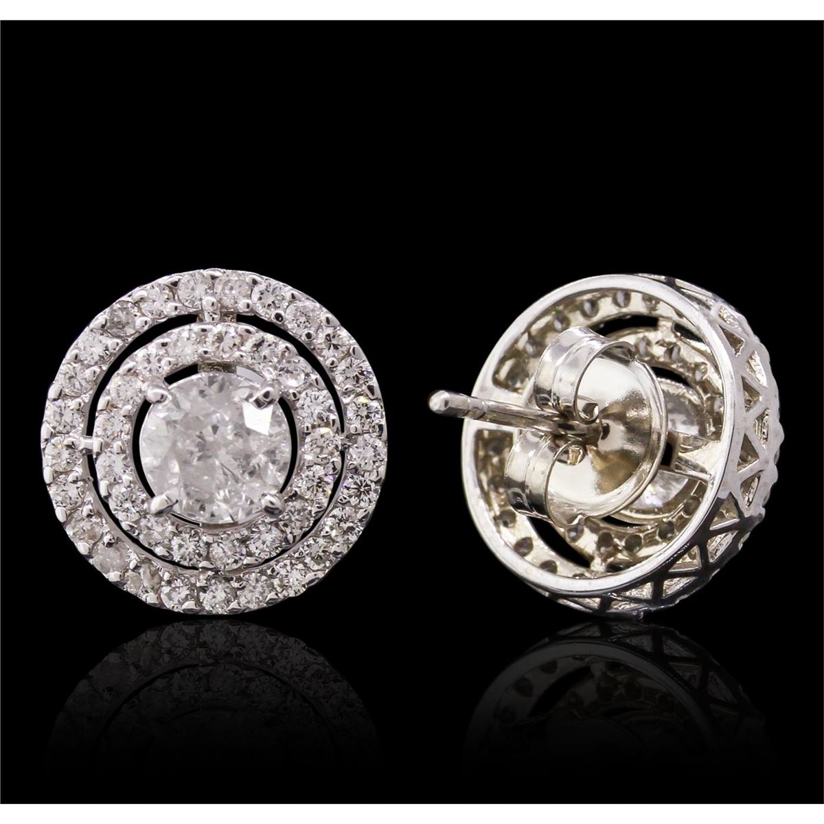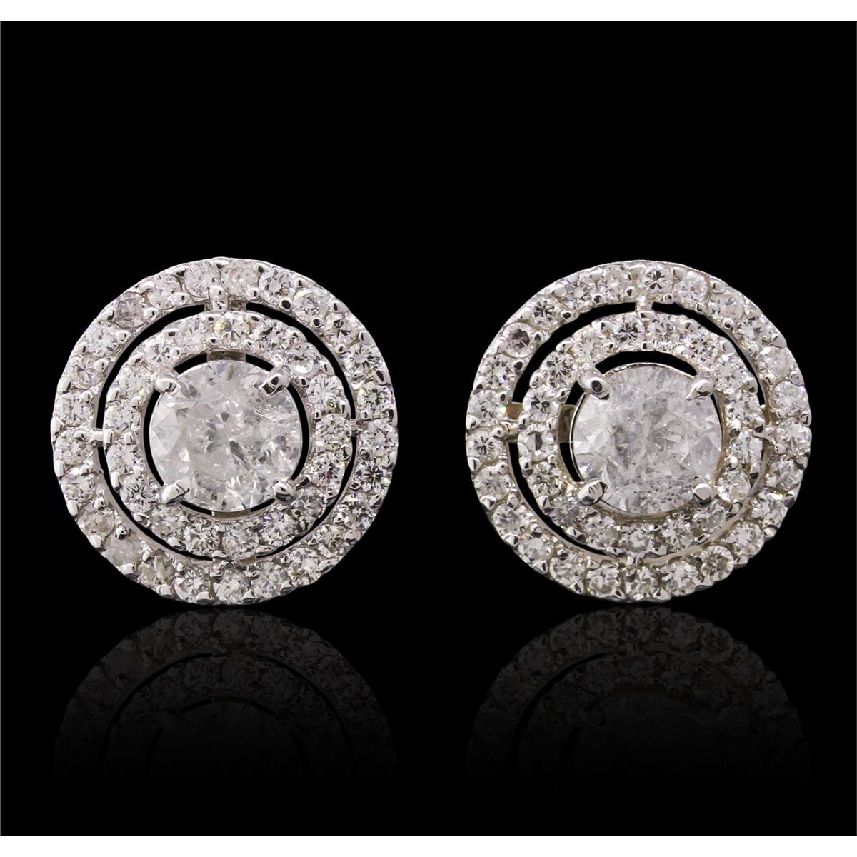 One pair electronically tested 14KT white gold Ladies combination cast & die struck stud earrings with friction posts with a bright polish finish. Condition is new. Containing: Two prong set round brilliant cut diamonds, measuring 6.16 - 6.14 x 3.69mm (depth est.) approximate. Total Weight of 2 Stones = 1.70ct. Clarity: I-2 to I-3. Color: H - I, Cut is Good. Eighty-Eight prong set round brilliant cut diamonds, measuring 1.40 - 1.40 x 0.84mm (depth est.) approximate. Total Weight of 88 Stones = 0.88ct. Clarity: I-1 to I-2. Color: H - I, Cut is Good. Total Weight of Diamonds 2.58ct. Total Weight of Earrings 4.40 grams. GGL Appraised at $10,000.00.