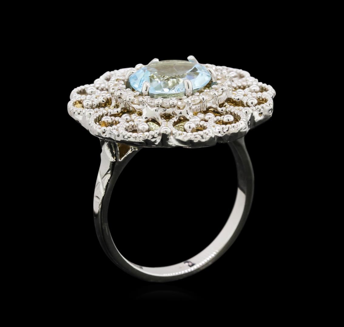 One ring featuring: 10.0 grams of 14KT white gold, (1) Blue Topaz with a total weight of 2.65ct and (24) diamonds with a total weight 0.48ctw.