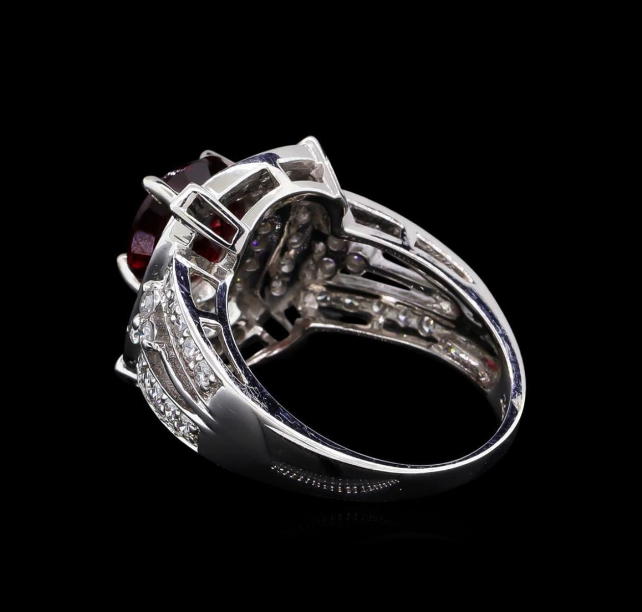 One electronically tested 14KT white gold Ladies combination cast & assembled ballerina ring with a bright polish finish. Condition is excellent. Containing: One prong set oval modified brilliant cut natural red spinel, measuring 8.40 x 7.60 x 5.80mm, approximate weight of 2.67ct., clarity is eye clean, type II, medium dark, moderately strong, orangy red color, (GIA oR 6/4), cut is good. Colored gemstones are presumed to have been subjected to commonly used and possible undetectable color/clarity enhancement processes. Sixty-Four prong set round brilliant cut diamonds, measuring 1.60 - 1.60 x 0.96mm (depth est.) approximate total weight of 64 Stones = 0.95ct. Clarity of SI-2 to I-1, Color of G - H, Cut is Good. Total Weight of Colored Stones 2.67ct. Total Weight of Diamonds 0.95ct. Total Weight of Ring 6.00gm. GGL Appraised.