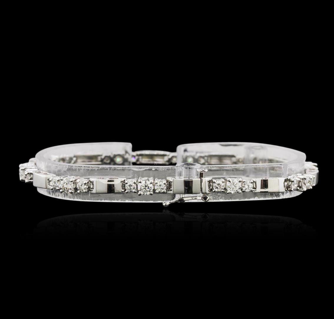 One electronically tested 14KT white gold ladies cast diamond bracelet with a hidden box clasp with safety closer with a bright polish finish. Measurements: 7 " in length Identified with markings of "14K". Condition is new. Containing: Ten prong set round brilliant cut diamonds, measuring 3.50 - 3.50 x 2.10mm (depth est.) approximate total weight of 10 Stones = 1.57ct. Clarity: SI-1 to I-1. Color: I - J, Cut is Good. Twenty prong set round brilliant cut diamonds, measuring 2.50 - 2.50 x 1.50mm (depth est.) approximate total weight of 20 Stones = 1.14ct. Clarity: SI-1 to I-1. Color: I - J, Cut is Good. All diamonds are graded in the mounting, unless otherwise stated. Total Weight of Diamonds 2.71ct. Total Weight of Bracelet 15.20 grams. GGL Appraised at $8,280.00.