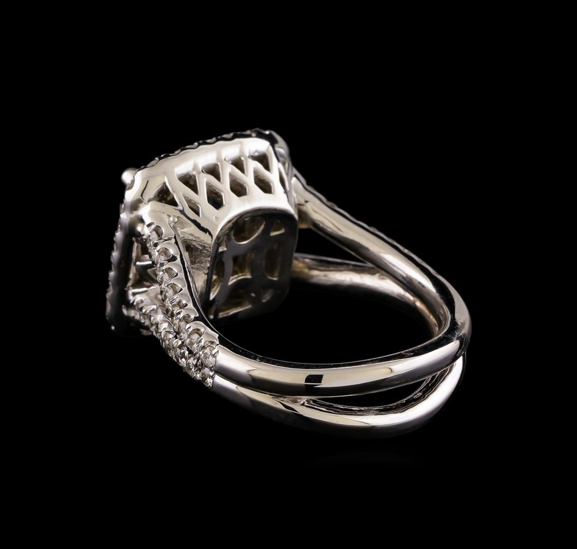 One electronically tested 14KT white gold ladies combination cast & assembled sapphire and diamond ring with a bright polish finish. Condition is new. Containing: One prong set square cushion modified brilliant cut natural blue sapphire, measuring 7.63 x 7.58 x 5.00mm, approximate weight of 2.72ct., clarity is eye clean, type II, medium dark, moderately strong, blue color, (GIA B 6/4), cut is good. Eighty prong set round brilliant cut diamonds, measuring 1.50 - 1.50 x 0.90mm (depth est.) approximate total weight of 80 Stones = 0.98ct. Clarity: SI-2 to I-1. Color: I - J, Cut is Good. Colored gemstones are presumed to have been subjected to commonly used enhancement processes. All diamonds and colored gemstones are graded in the mounting, unless otherwise stated. Total Weight of Colored Stones 2.72ct. Total Weight of Diamonds 0.98ct. Total Weight of Ring 11.40 grams. GGL Appraised.