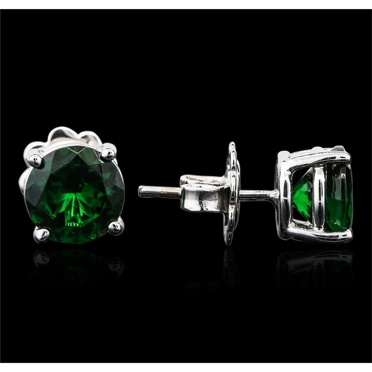 One pair of earrings featuring: 14KT white gold weighing 2.17 grams containing two tsavorites with a total weight of 2.72cts.