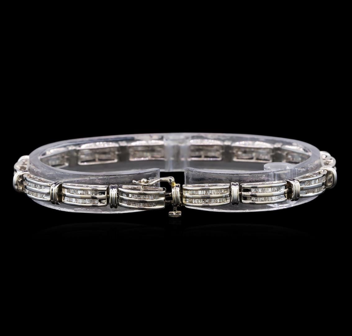 One electronically tested 14KT white gold ladies cast diamond bracelet with a hidden box clasp with safety closer with a bright polish finish. Measurements: 7 inches length Condition is very good. Containing: Two Hundred Eighty channel set baguette cut diamonds, measuring 1.30 x 1.00 x 0.85mm (depth est.) approximate total weight of 280 Stones = 2.83ct. Clarity: SI-2 to I-2. Color: I - J. All diamonds are graded in the mounting, unless otherwise stated. Total Weight of Diamonds 2.83ct. Total Weight of Bracelet 15.30 grams. GGL Appraised at $5,975.00.