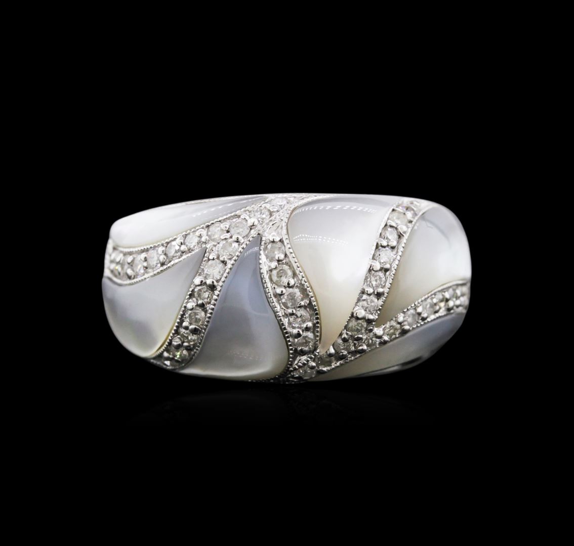 One ring featuring: 14KT white gold weighing 6.17 grams containing six mother of pearls with a total weight of 2.99ct and 41 round diamonds with a total weight of 0.35ct.