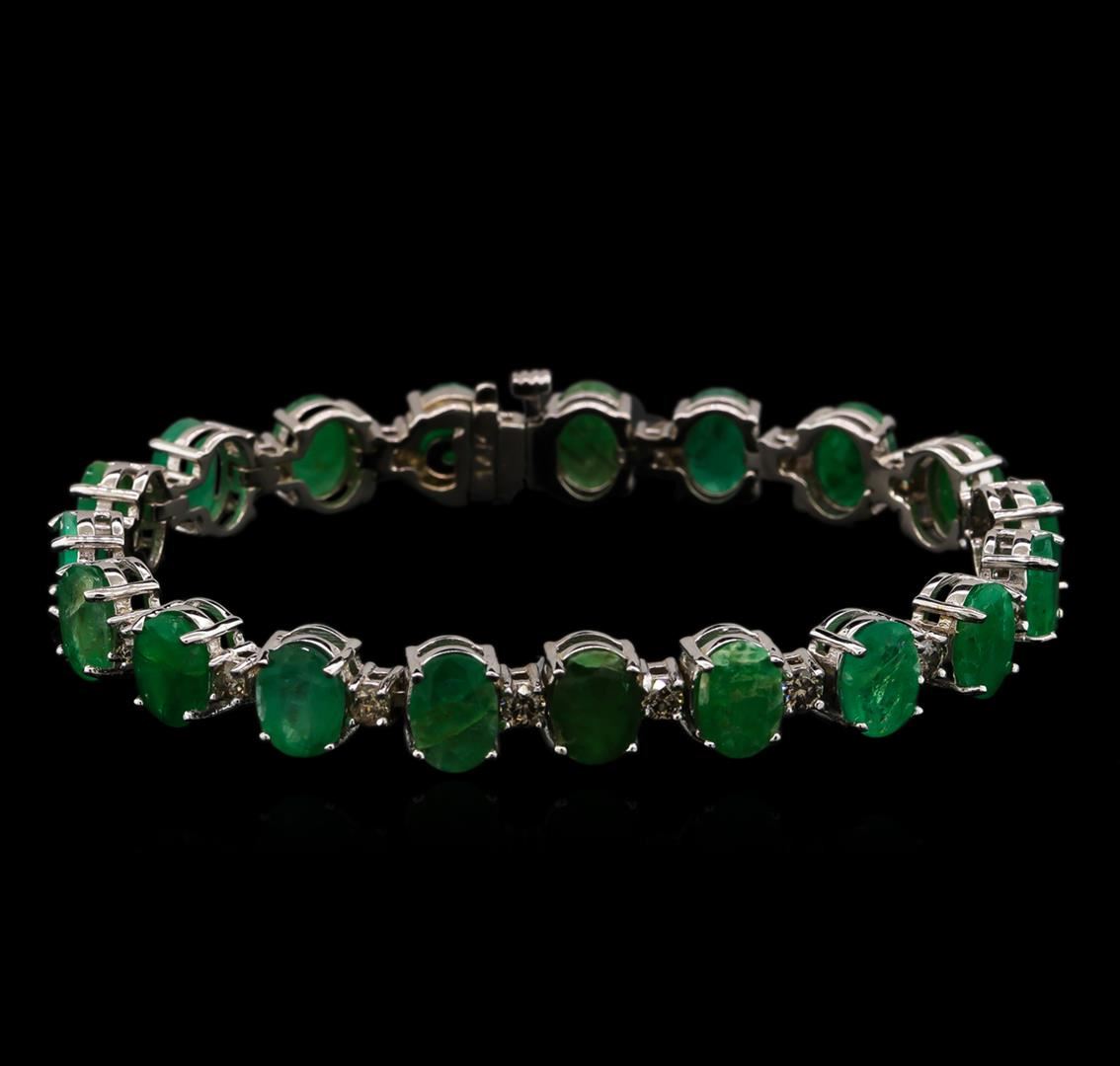 One electronically tested 14KT white gold ladies cast & assembled emerald and diamond bracelet with a bright polish finish. Condition is new, good workmanship. Seven inch length bracelet features a flexible ribbon of emeralds alternated by diamonds terminating in a concealed clasp with safety bar. Identified with markings of "14K". Containing: Nineteen prong set oval mixed cut natural emeralds, measuring 8.00 x 6.00 x 3.90mm, 6%. bulge factor, approximate. Total Weight of 20.90ct., clarity is severely included, type III, medium, very slightly grayish, very slightly bluish green color, (GIA vslbG 5/3), cut is good. Transmitting light somewhat diffusely, translucent. Naturally occurring internal & external characteristics are present. Indications of oil residue. Measurements & the color grade are an average for the group. Graded in the setting. Nineteen prong set round brilliant cut diamonds, measuring 2.80 - 2.70 x 1.65mm (depth est.) approximate. Total Weight of 19 Stones = 1.54ct. Color grade is an average for the group. Graded in the setting. Clarity: I-1 to I-2. Total Weight of Colored Stones 20.90ct. Total Weight of Diamonds 1.54ct. Total Weight of Bracelet 20.60 grams. AIG Appraised at $9,985.00.