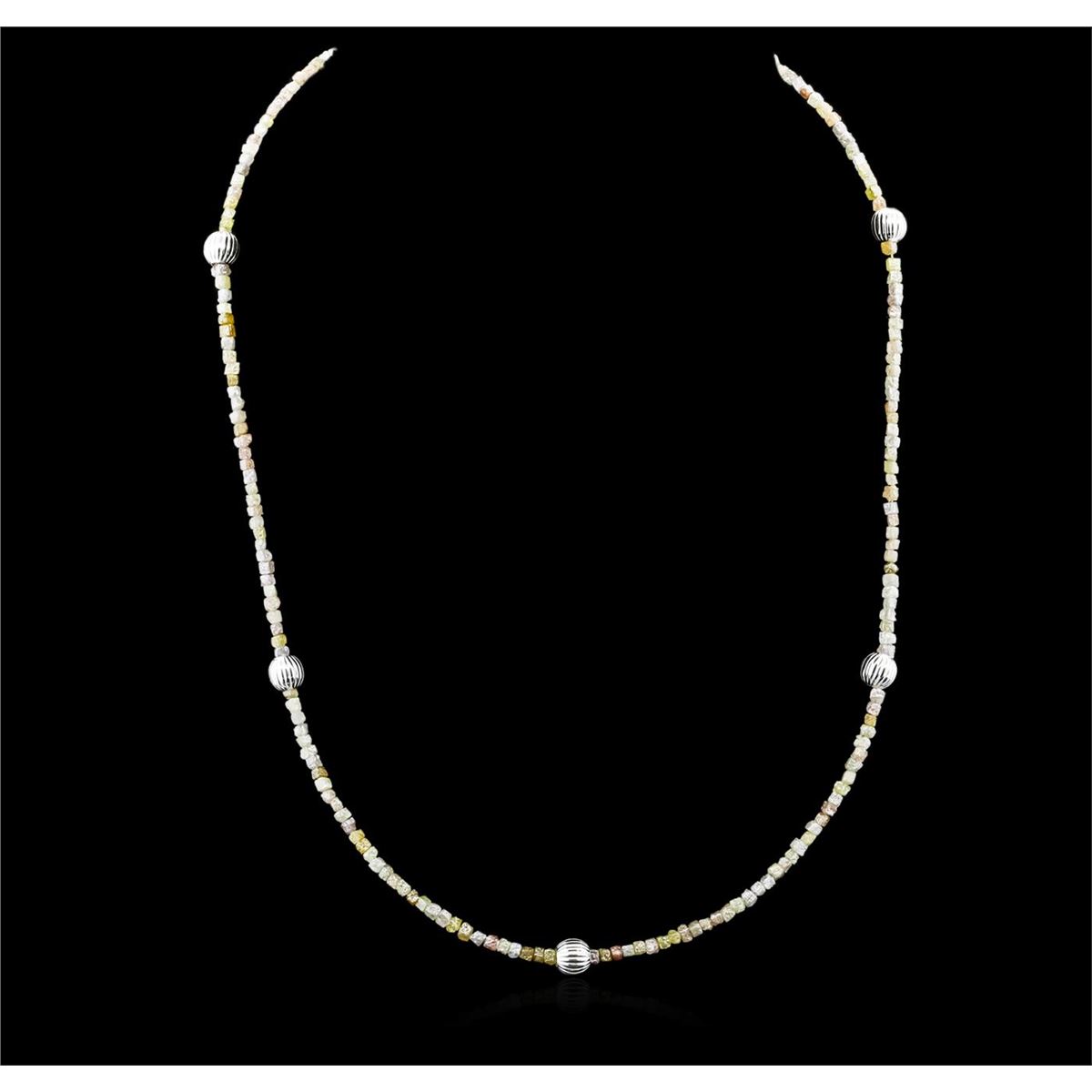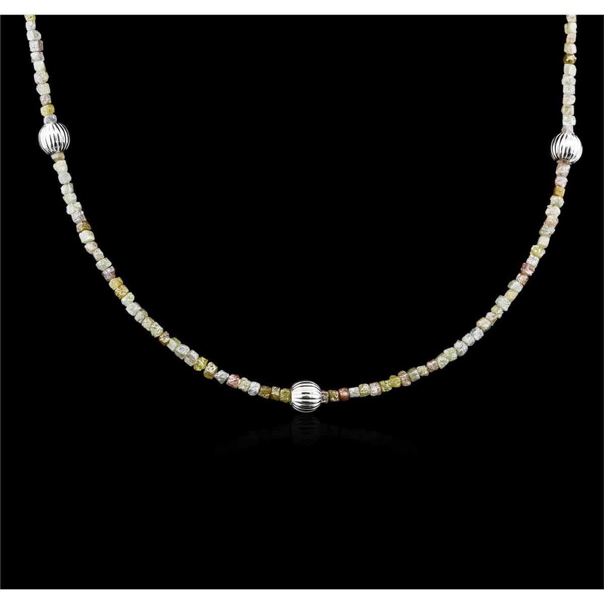 One necklace featuring: 14KT white gold weighing 6.40 grams containing rough diamonds with a total weight of 21.78cts and metal beads.