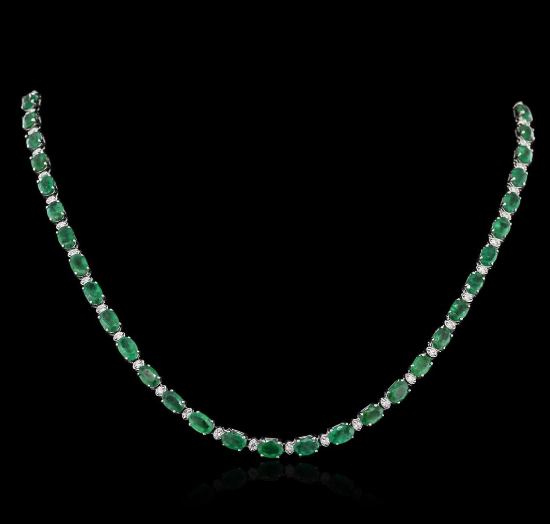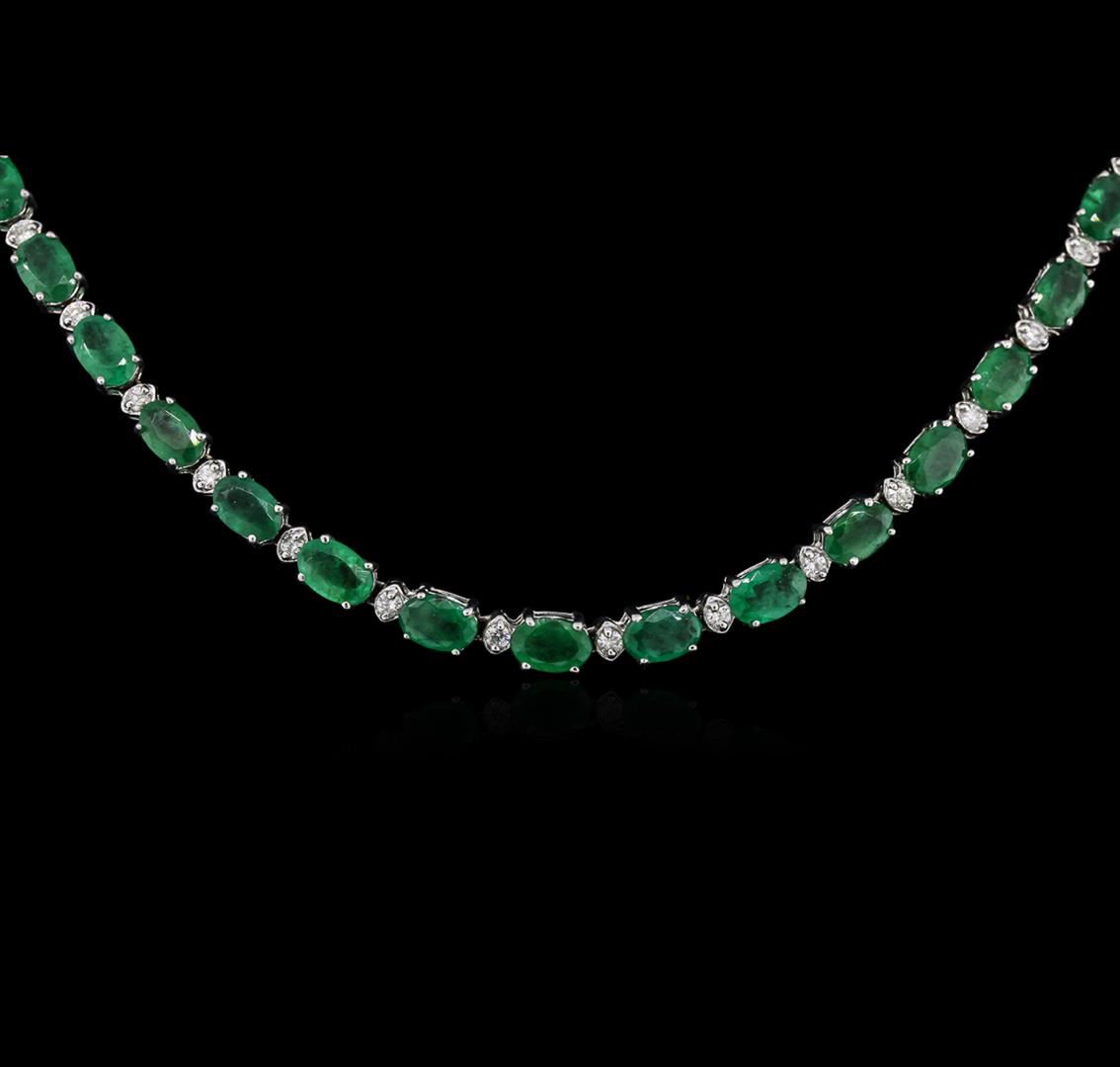 One necklace featuring: 14KT white gold weighing 15.00 grams containing 52 emeralds with a total weight of 23.00ct and diamonds with a total weight of 1.28ct.