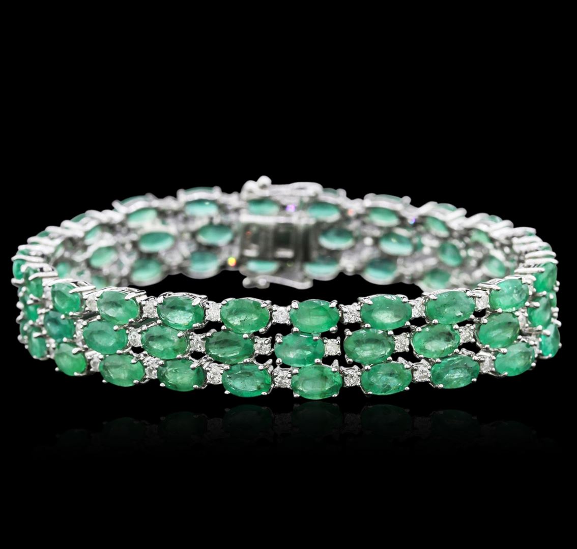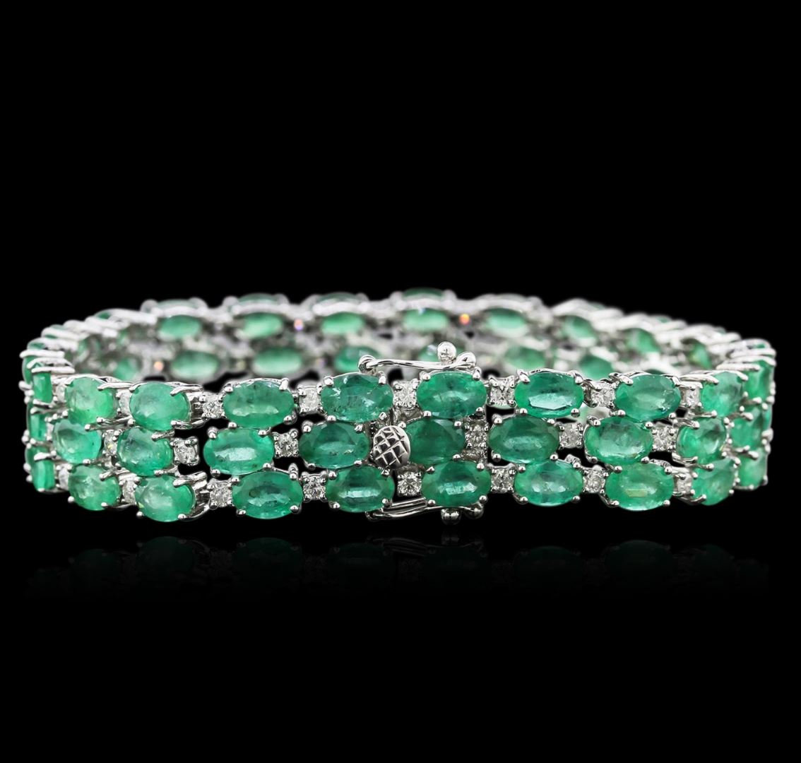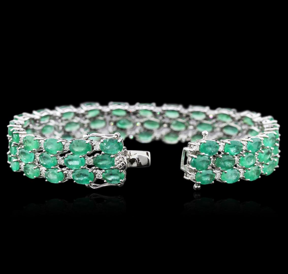 One bracelet featuring: 14KT white gold weighing 20.00 grams containing 66 emeralds with a total weight of 28.09ct and round diamonds with a total weight of 2.20ct.
